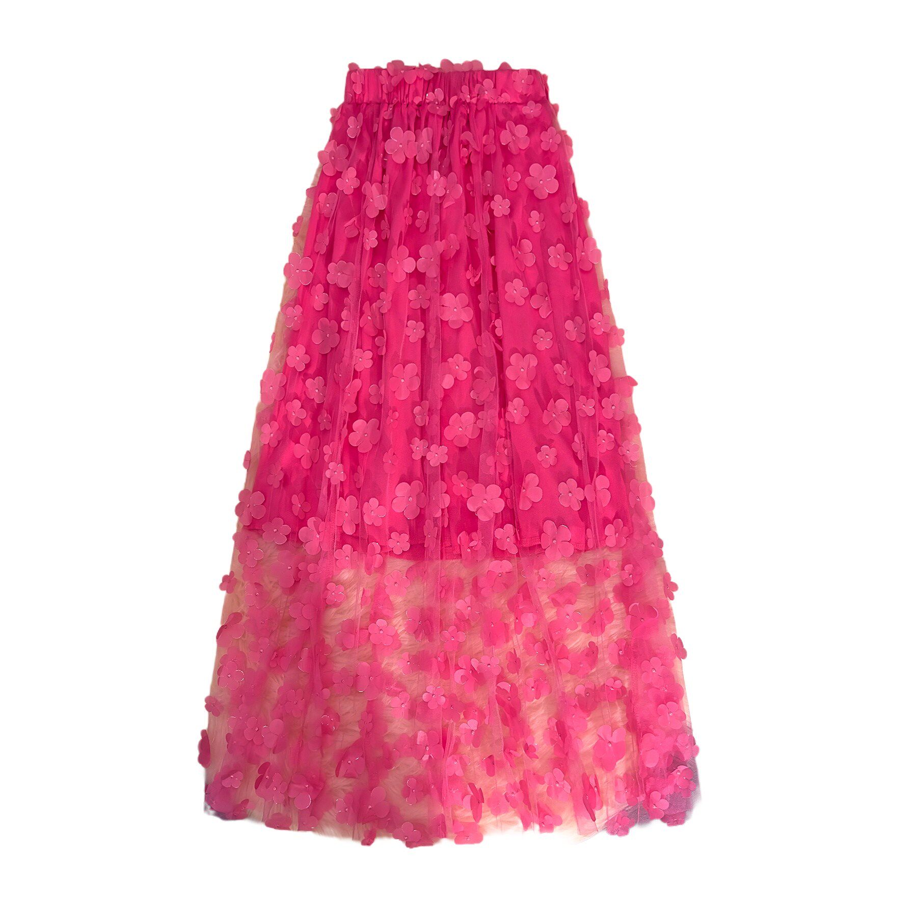 Трехмерная летняя длинная юбка, в цветочек, средней длины, свободный прямой крой, изысканный стиль