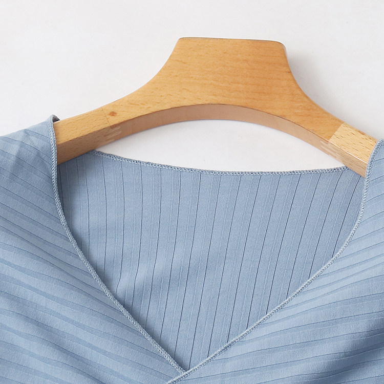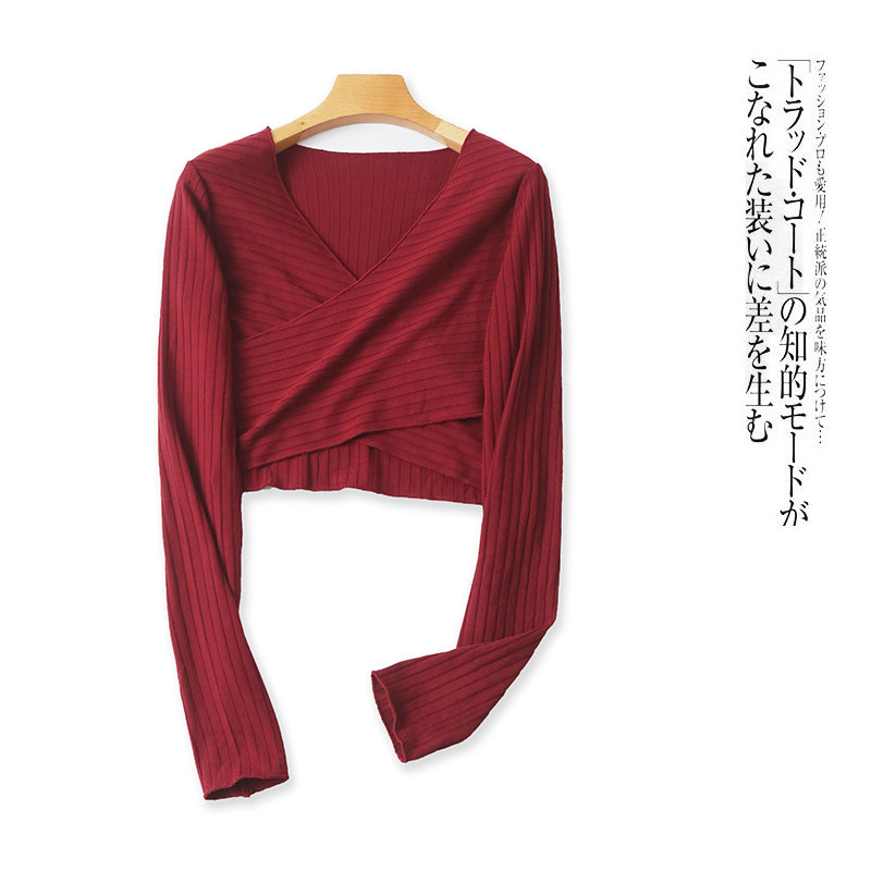 (Трансграничная торговля), модная трикотажная осенняя короткая футболка, V-образный вырез, облегающий крой