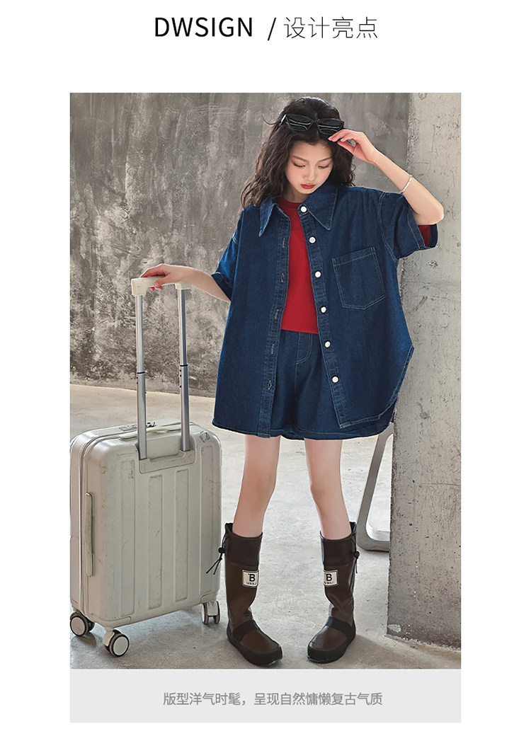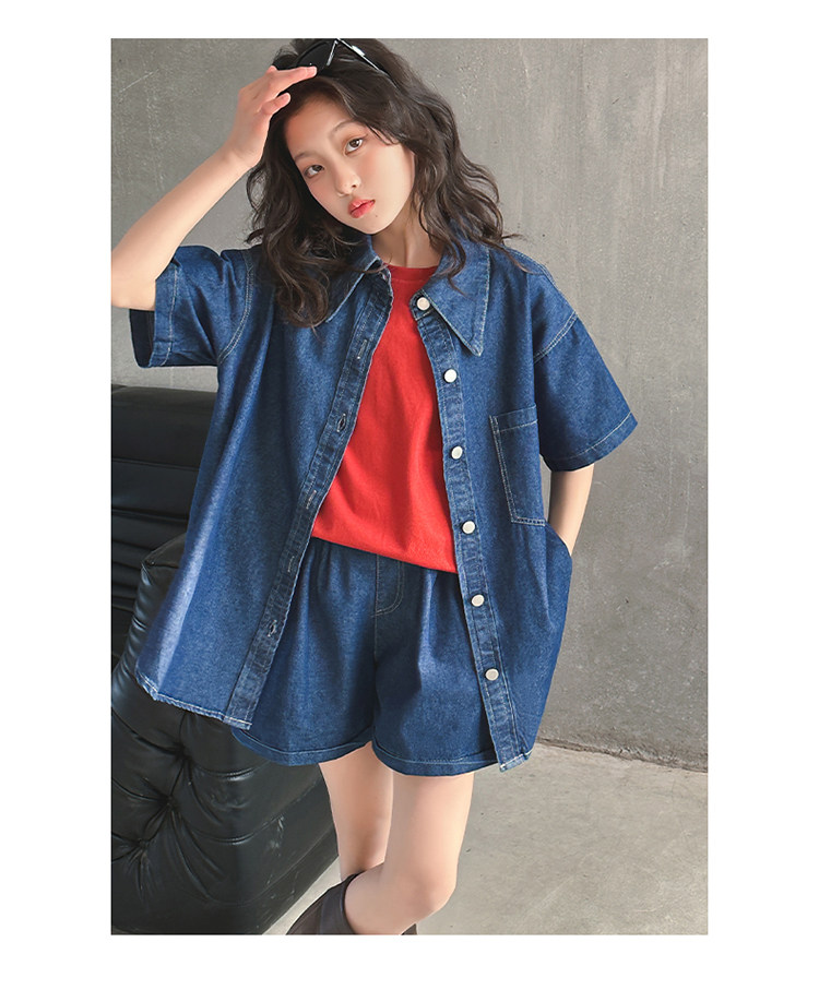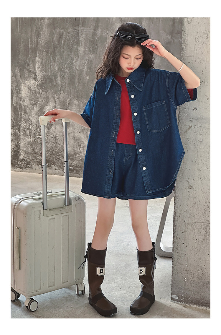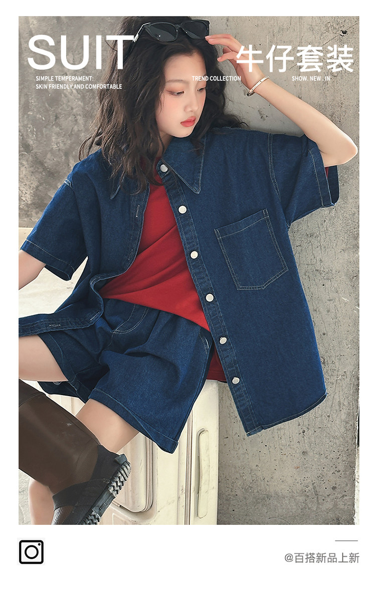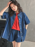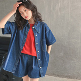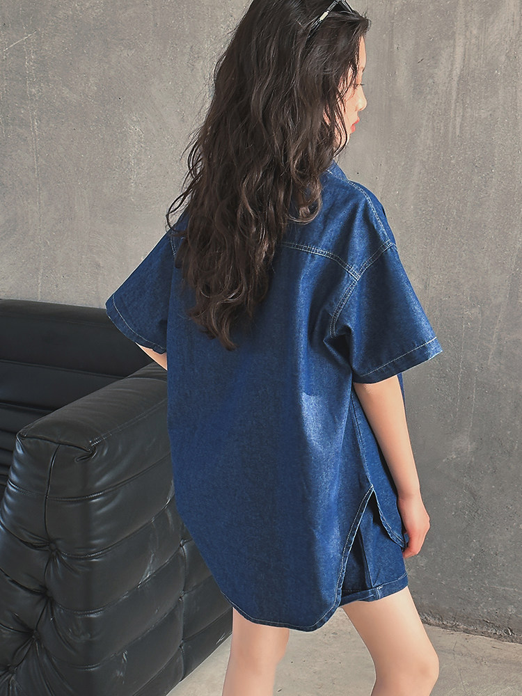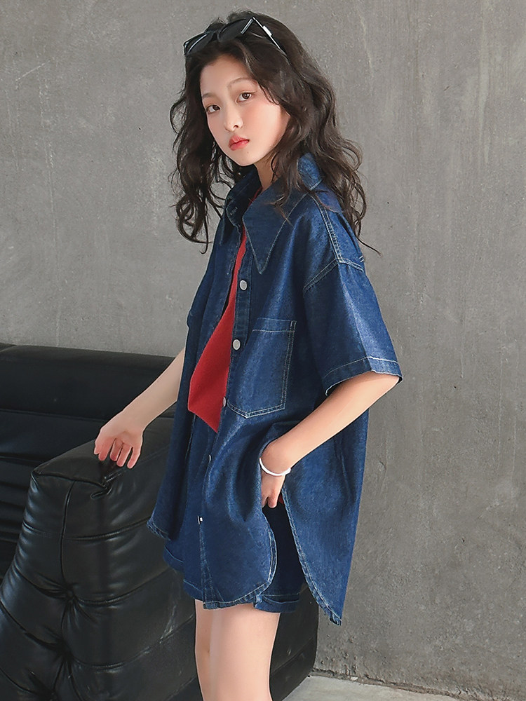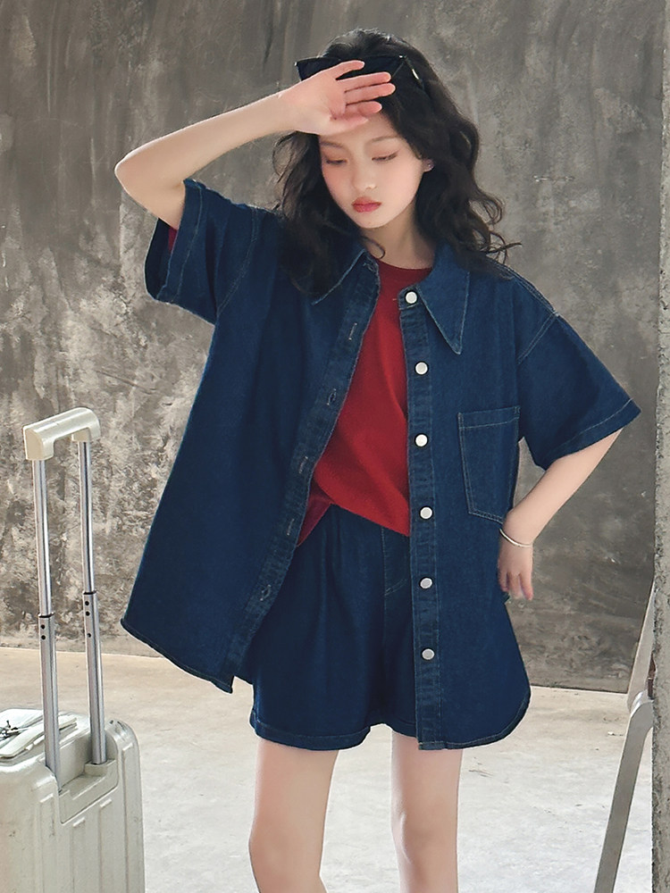 Летний комплект, летняя тонкая летняя одежда, рубашка, джинсовая юбка, в западном стиле, подходит для подростков