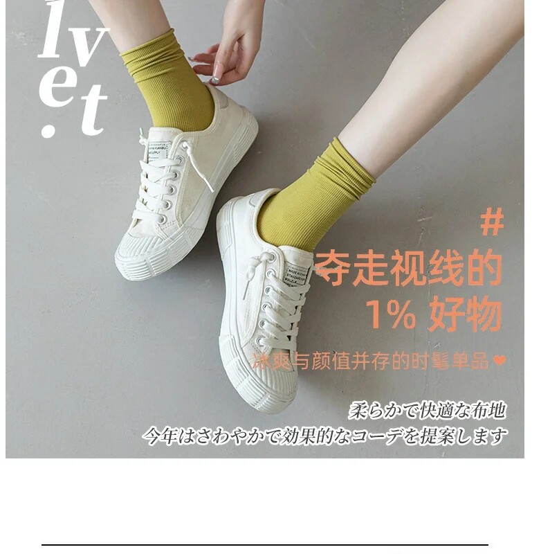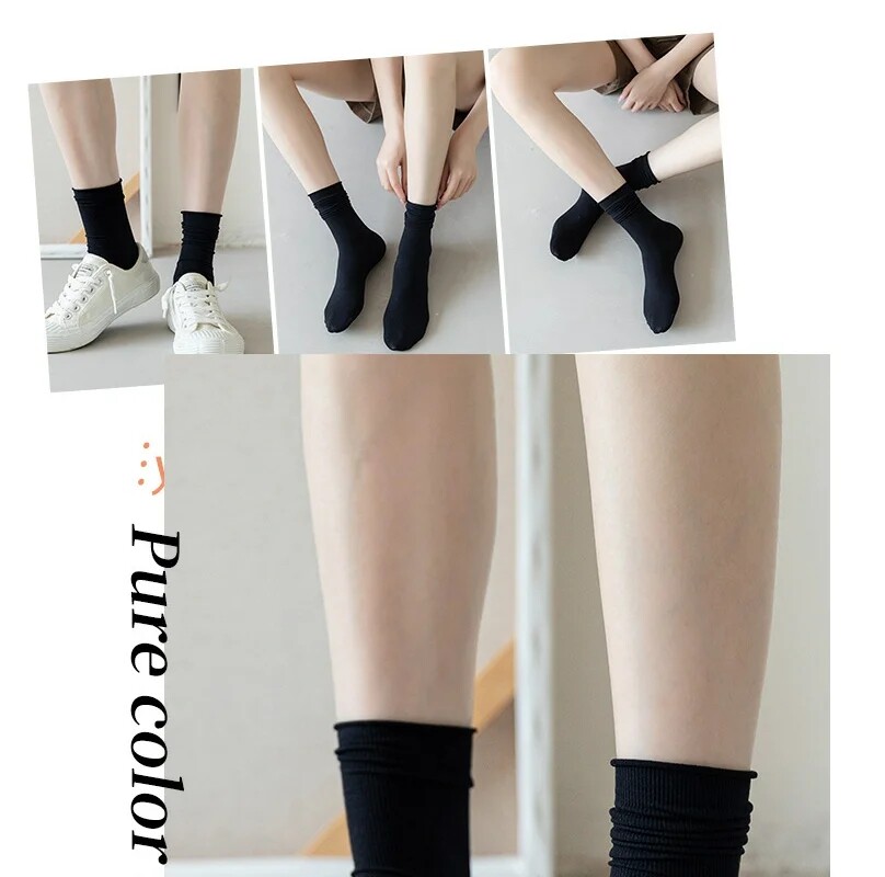 Белые летние тонкие шелковые черные носки, средней длины