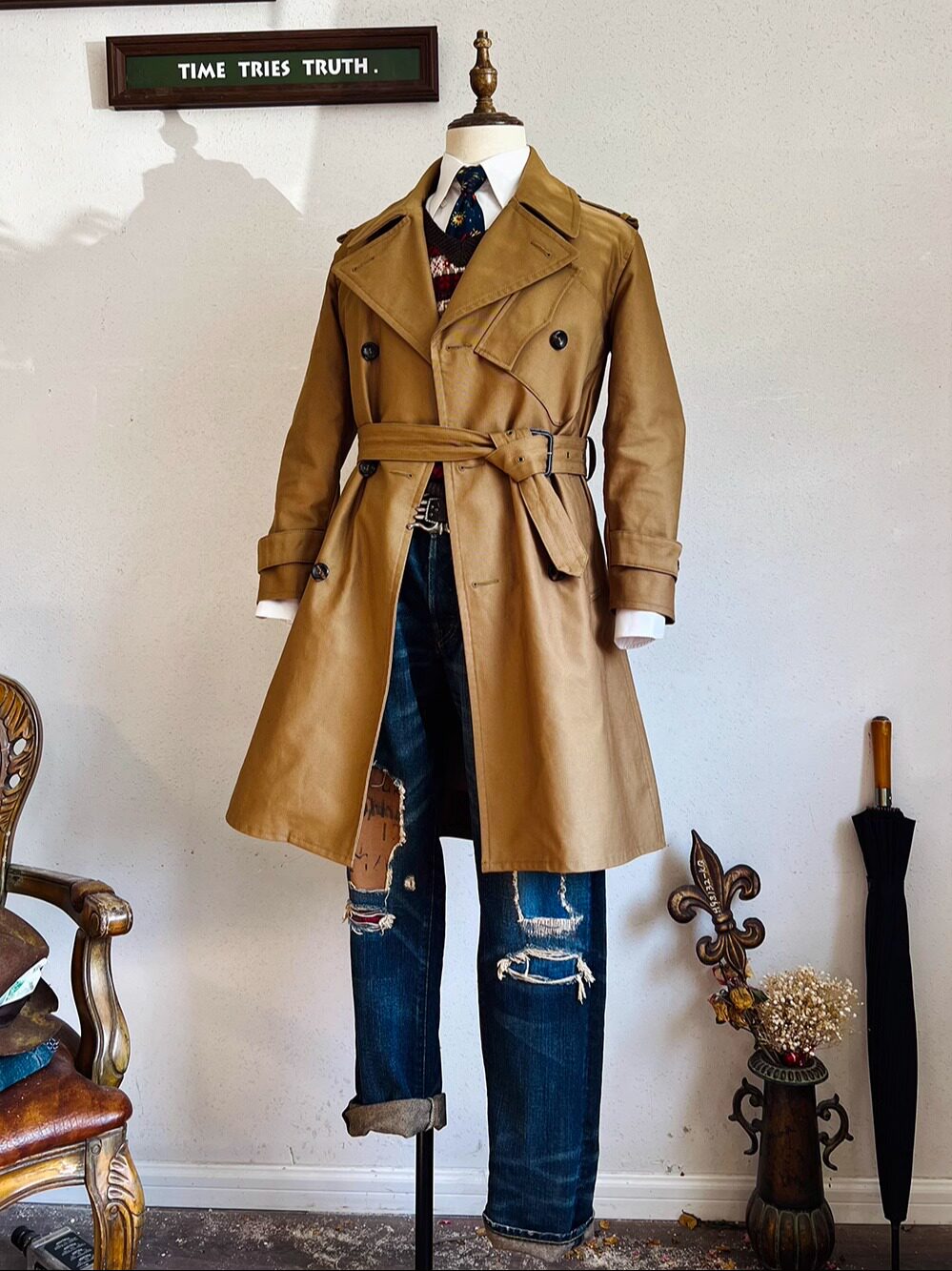Тяжелая обрывавшаяся джунгли британская траншея кавалерийская пальто средней длины
