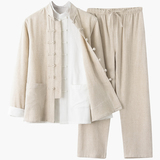 Комплект для пожилых людей, лонгслив, нарукавники, спортивная одежда, ханьфу, китайский стиль, 3 предмета, для среднего возраста, из хлопка и льна