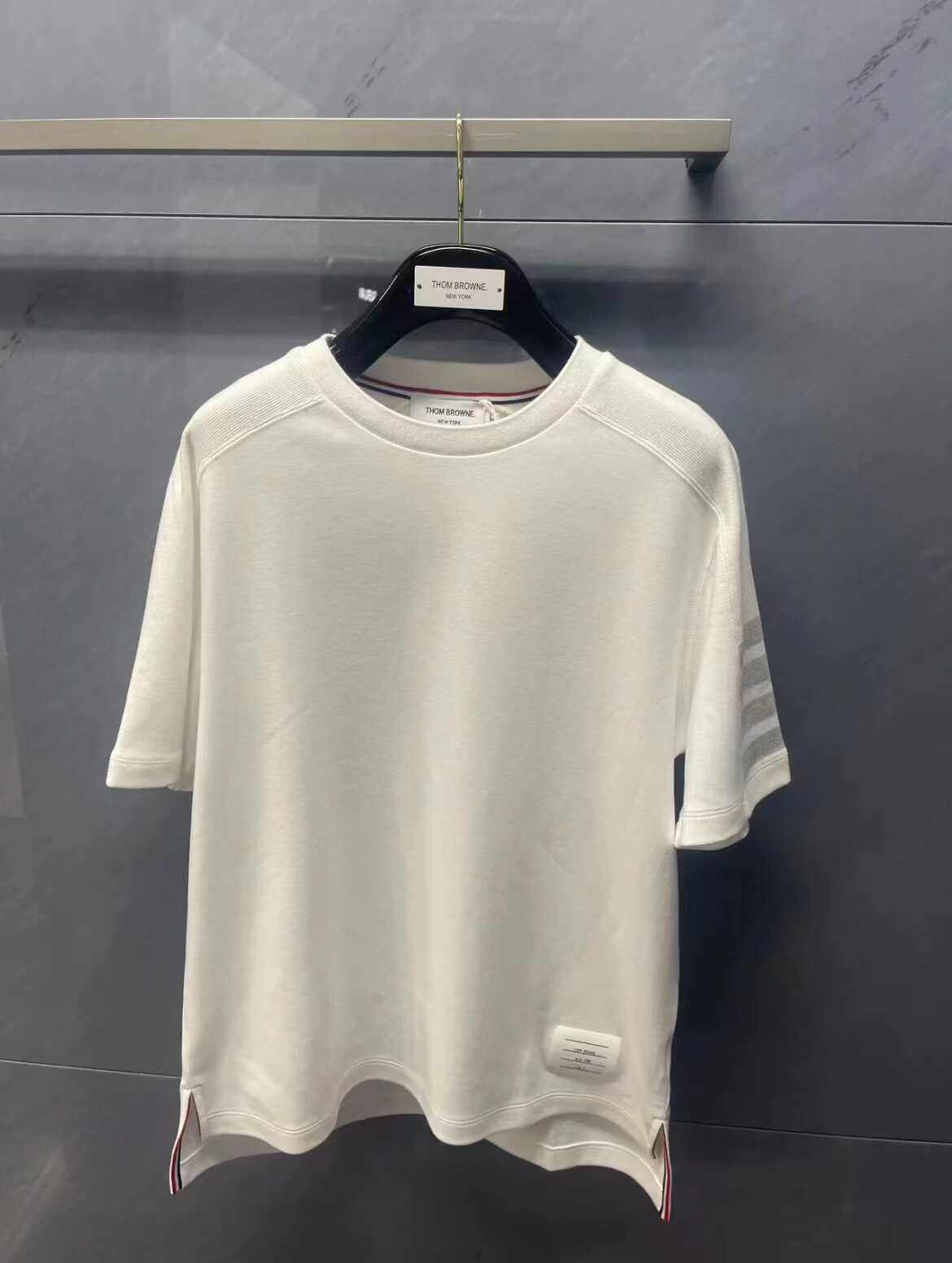 Thom Browne Летняя классическая футболка с коротким рукавом с круглым воротником подходит для мужчин и женщин