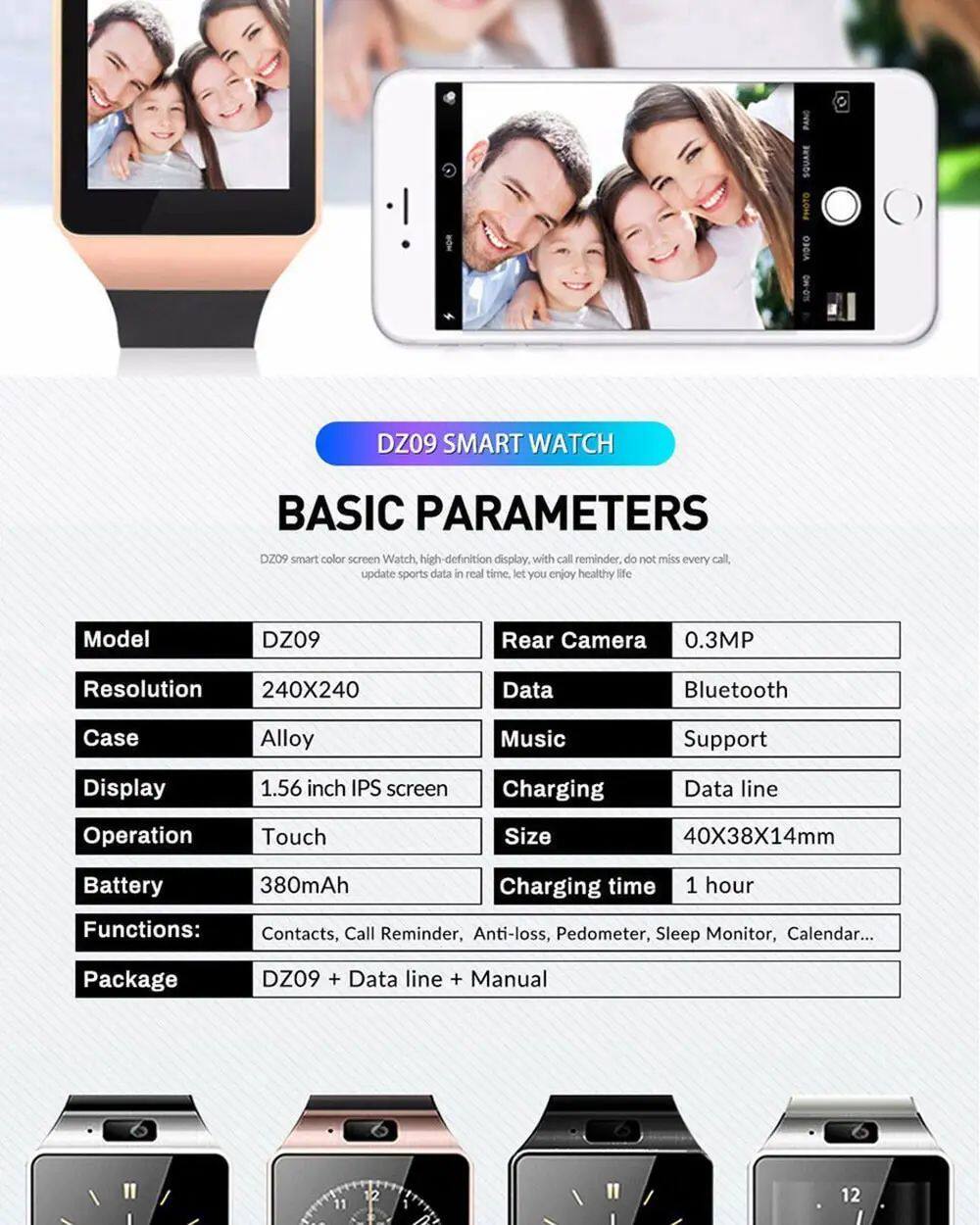 DZ09 Professional Smart Watch 2G SIM TF Camera Waterpronation WR