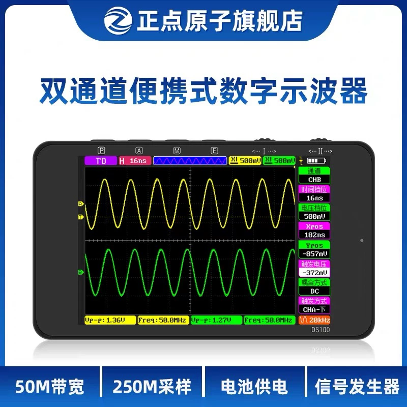 Точечный атомный DS100 Руночный цифровой осциллограф Двойной канал мини -небольшой портативный приборной метр Авто восстановление 50 м