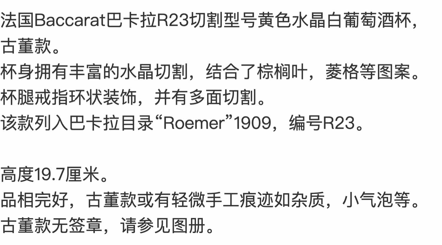 Бесплатная доставка антикварная французская баккара/бакара R23 Cut Yellow Crystal White Wine Glass