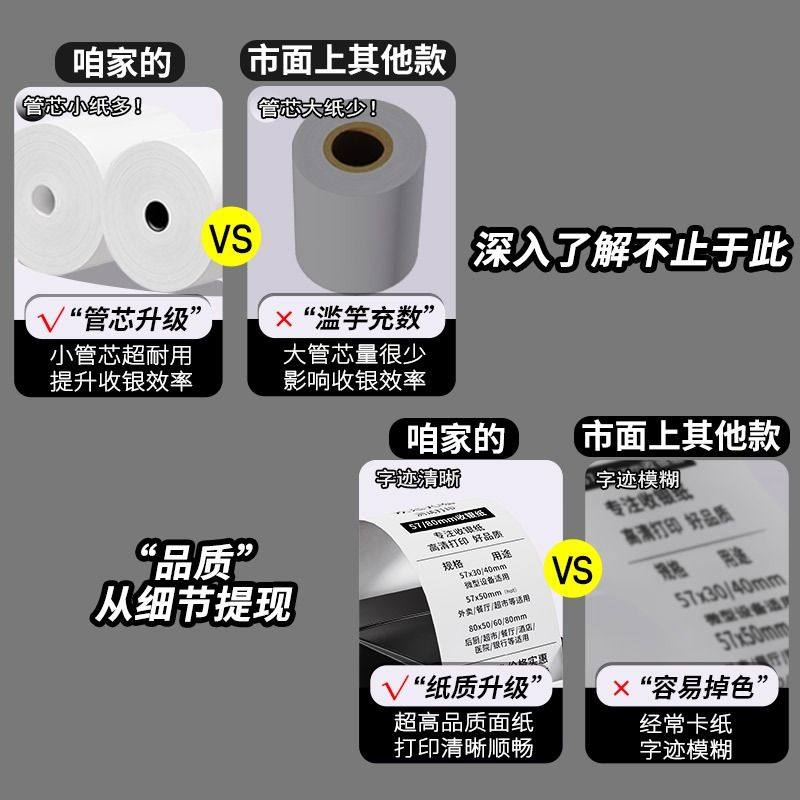 Печатная бумага Heritin 57x50 Sprum Reservoir Complete Box Takeaway Printing Printing Supermarket Supermarket Meituan Printed Небольшой рулон 58 мм печатная бумага 80x80x60 Meow Meow Machin