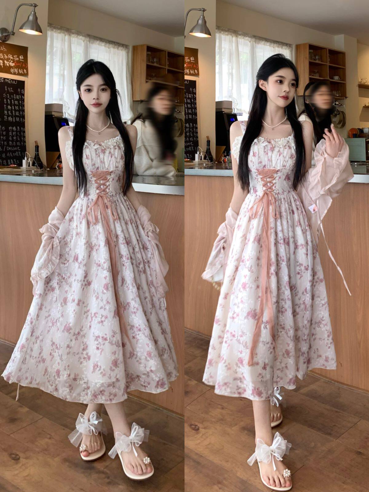 Кардиган, милый длинный корсет, платье, юбка, комплект, большой размер, цветочный принт, длина макси