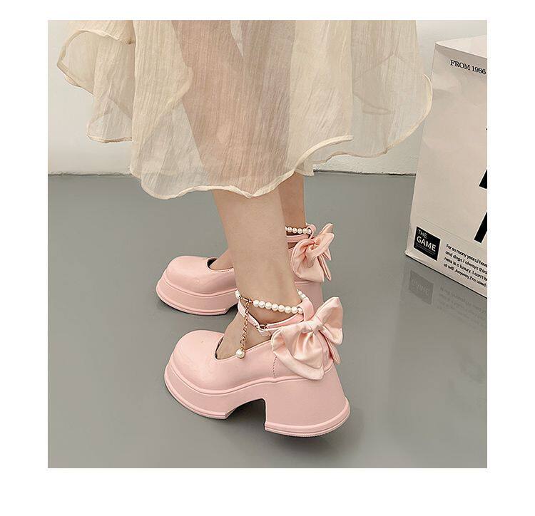 Демисезонная универсальная обувь на высоком каблуке на платформе для кожаной обуви, модель весна/осень 2025 года, французский стиль