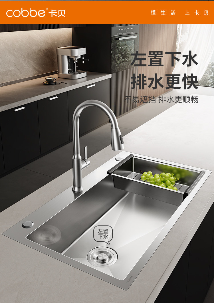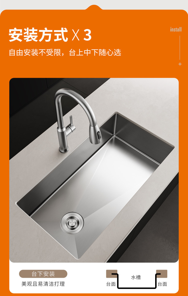 Carba 304 раковина из нержавеющей стали Большой однолель и толстая боковая дренаж посудомоечная машина для посудомоечной машины под прудом из бассейна под прудом