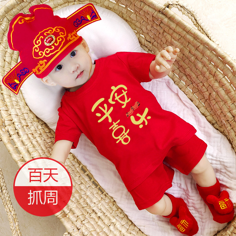Летнее платье, красный цветной детский комплект, китайский стиль