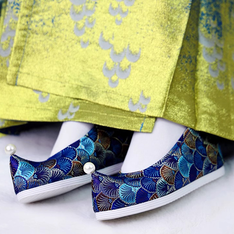 Gufeng Hanfu Shoe Children Song Song Song The Zengyun's Bow Shoes, поднимая головы, чтобы увеличить костюмированную обувь