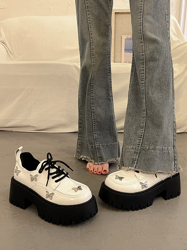 Высокая весенняя демисезонная обувь на платформе для кожаной обуви в английском стиле на высоком каблуке, французский стиль, в британском стиле