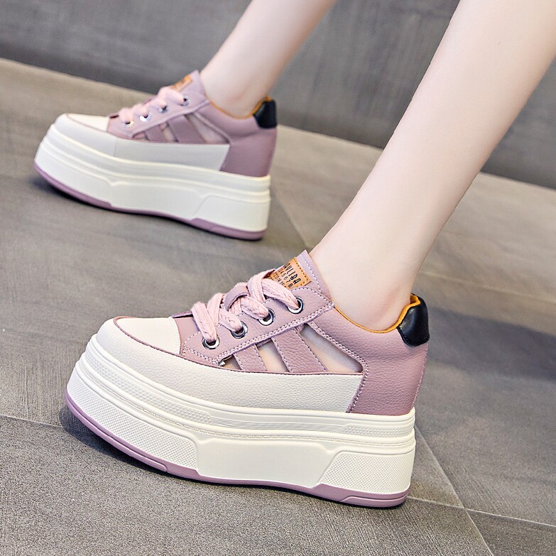 Ocnltiy2024, летние новые стильные дышащие универсальные туфли с отверстиями для женщин, универсальные спортивные туфли на танкетке с толстой подошвой из натуральной кожи