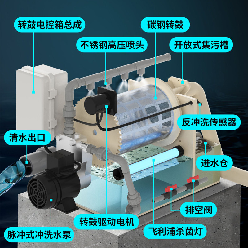 Полностью автоматический ротор рыб Микрофильтр Микро -фильтр наружный пульс -тип фильтр для лечения рыбы