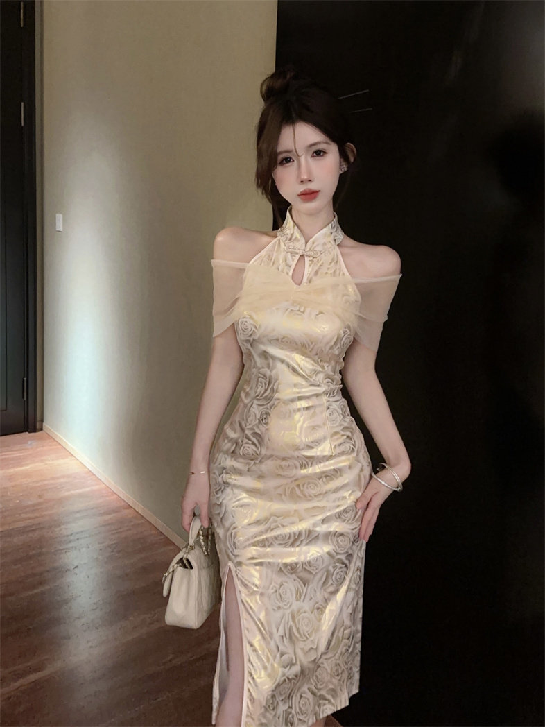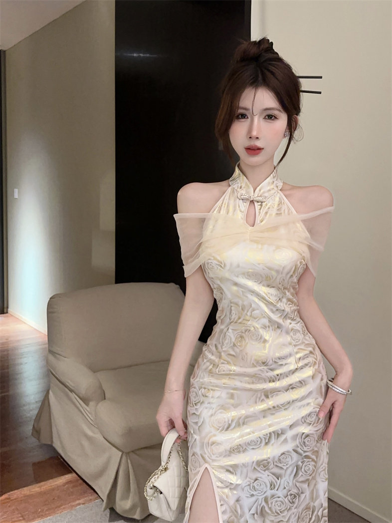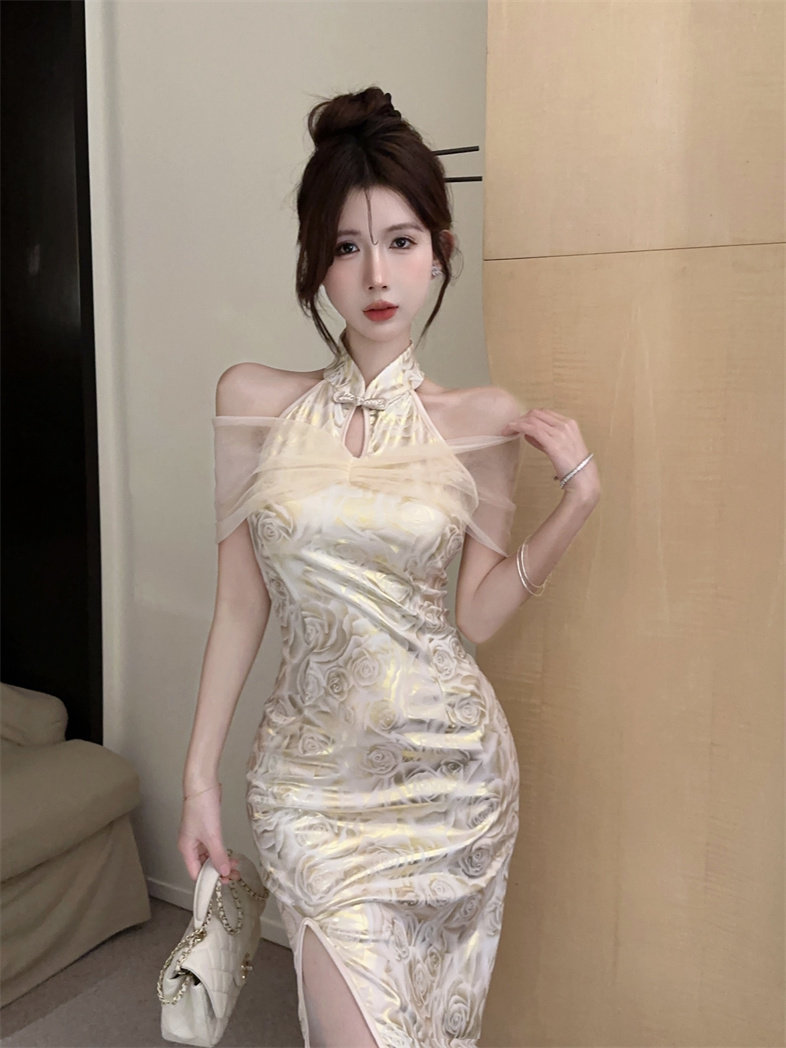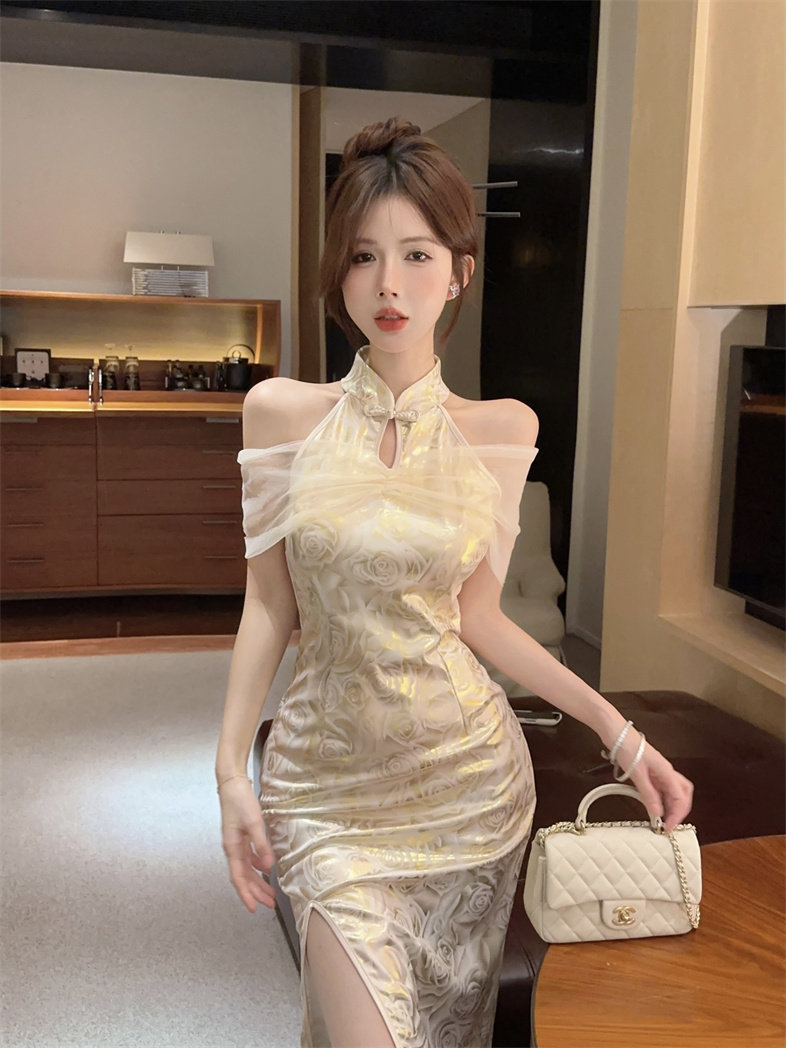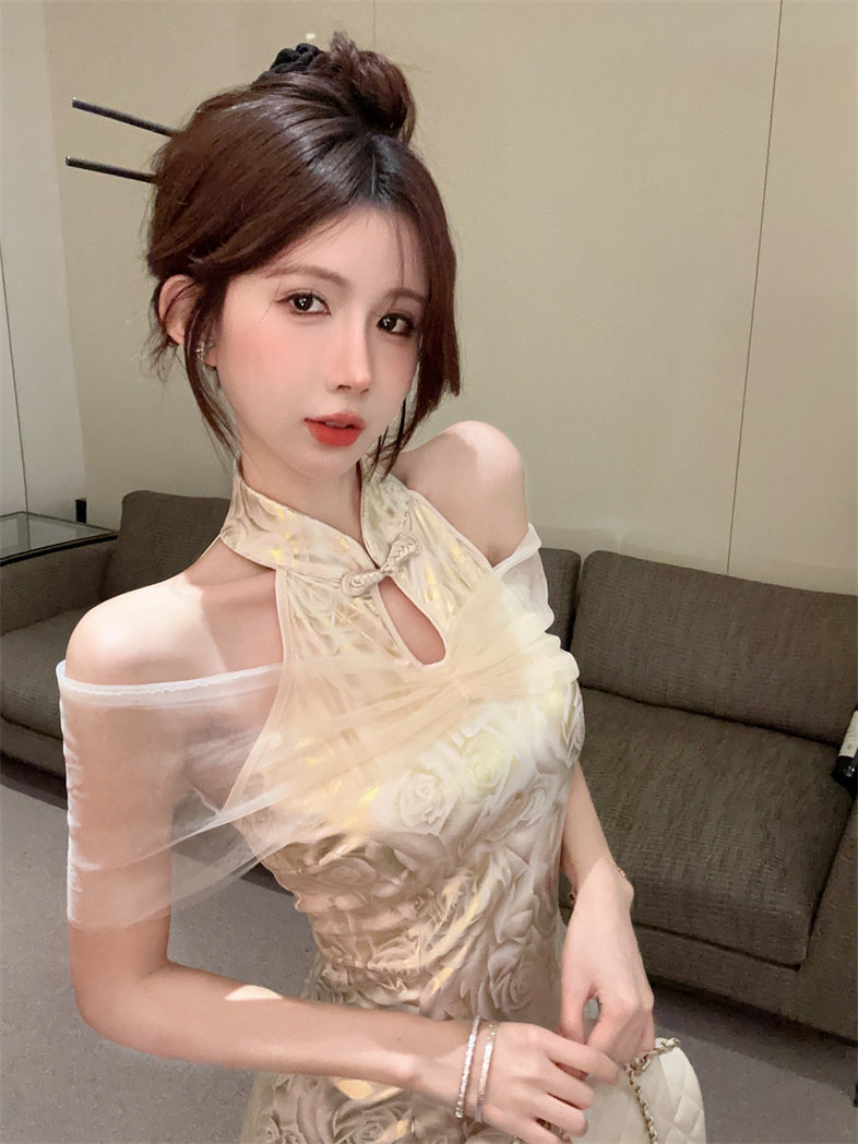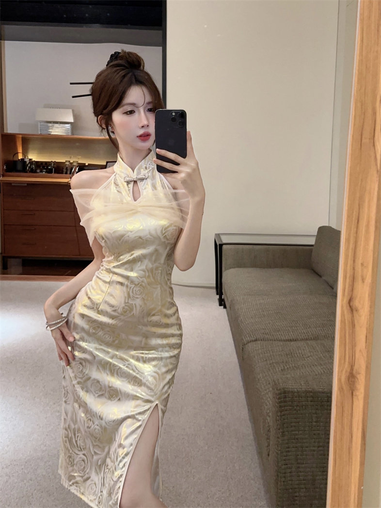 Этническое элитное ципао, этнический стиль, китайский стиль, с акцентом на бедрах