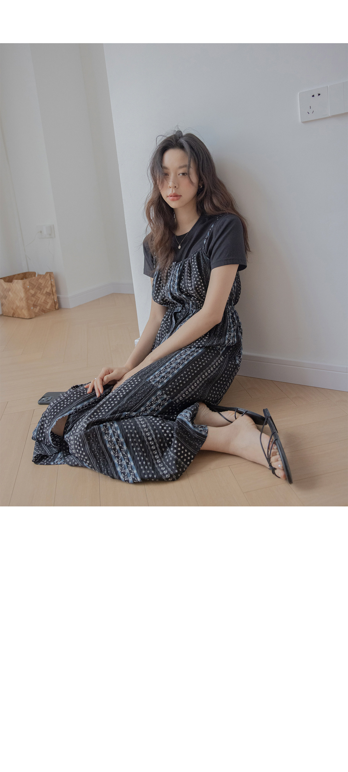 Платье, приталенная длинная юбка, цветочный принт, городской стиль, высокая талия, яркий броский стиль