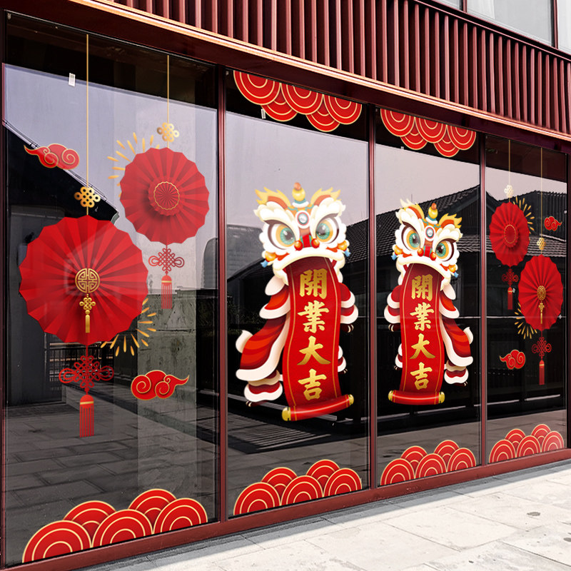 Открытие двери Daji наклейка на дверь магазин празднование танец льва куплет атмосфера макет украшения электростатическая наклейка атмосфера наклейка на стеклянную дверь