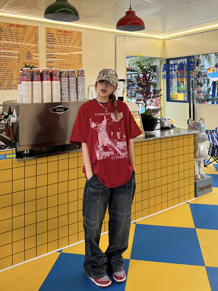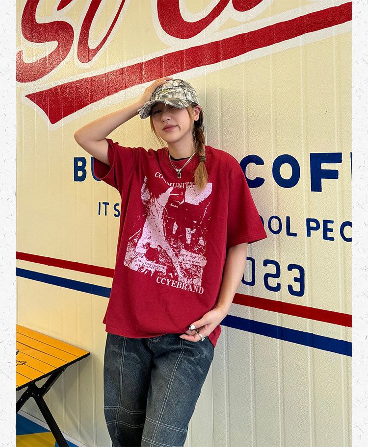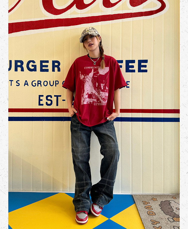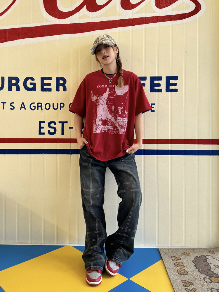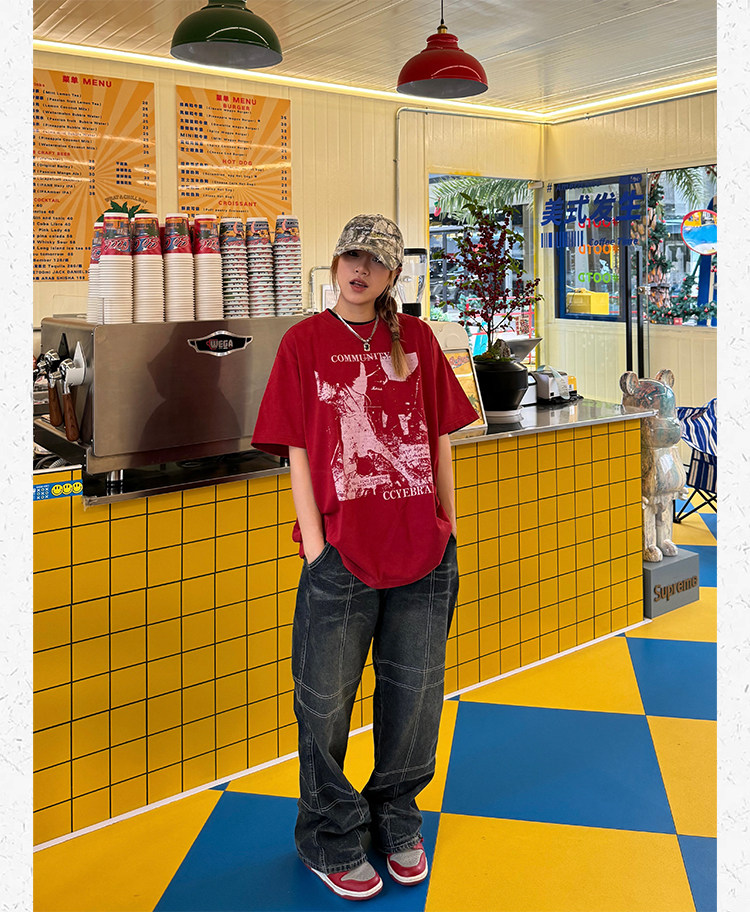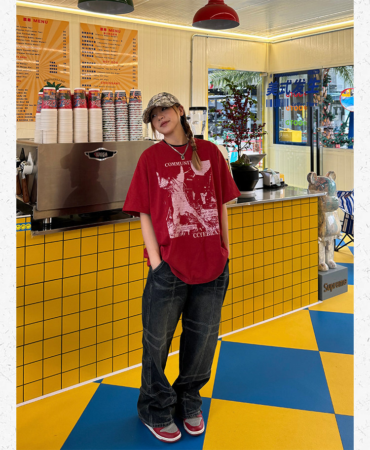 Ретро классическая футболка с коротким рукавом, в американском стиле, свободный крой