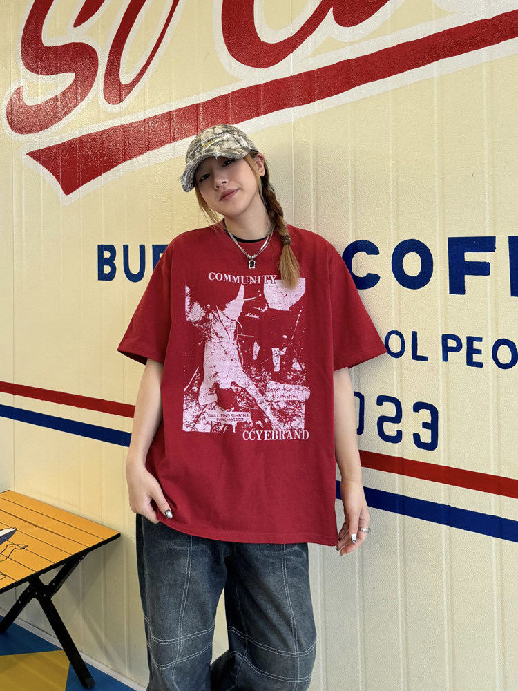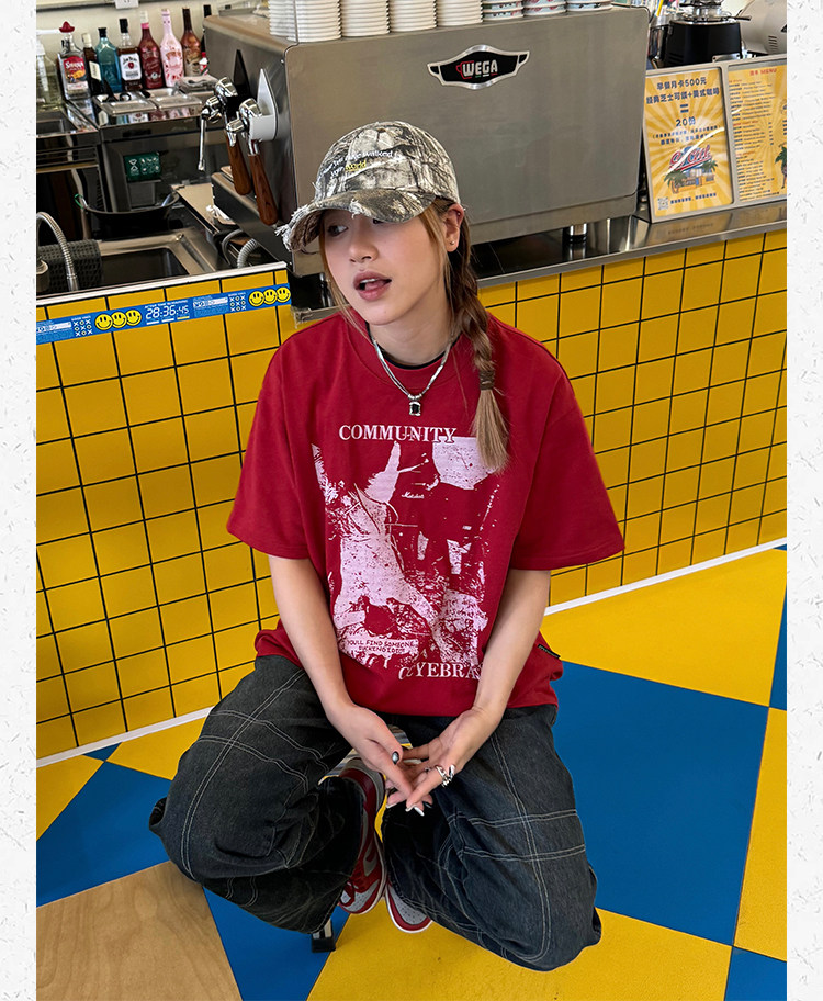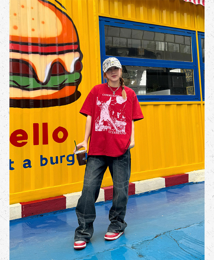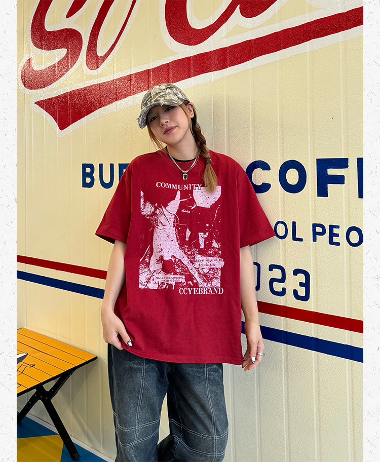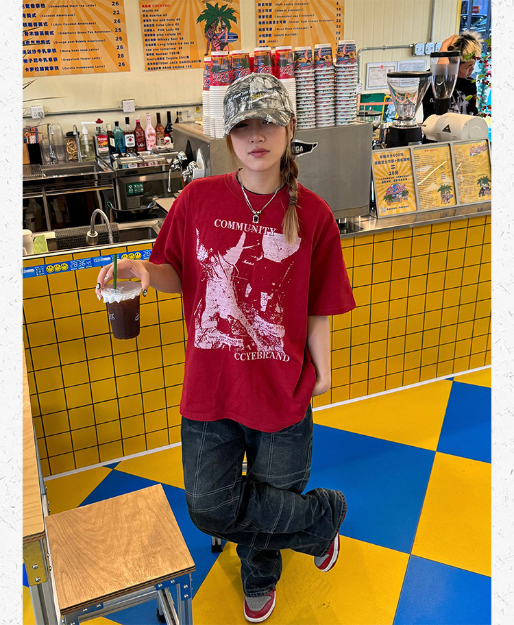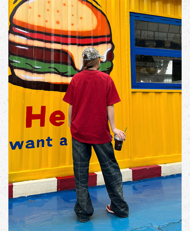 Ретро классическая футболка с коротким рукавом, в американском стиле, свободный крой