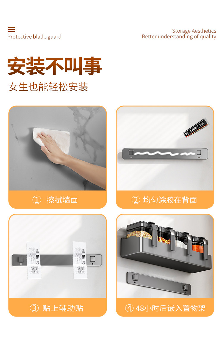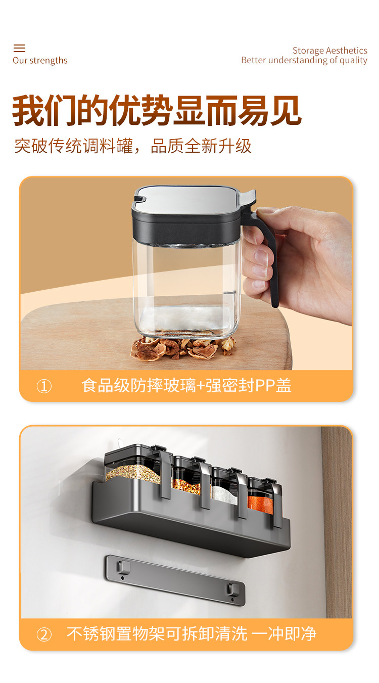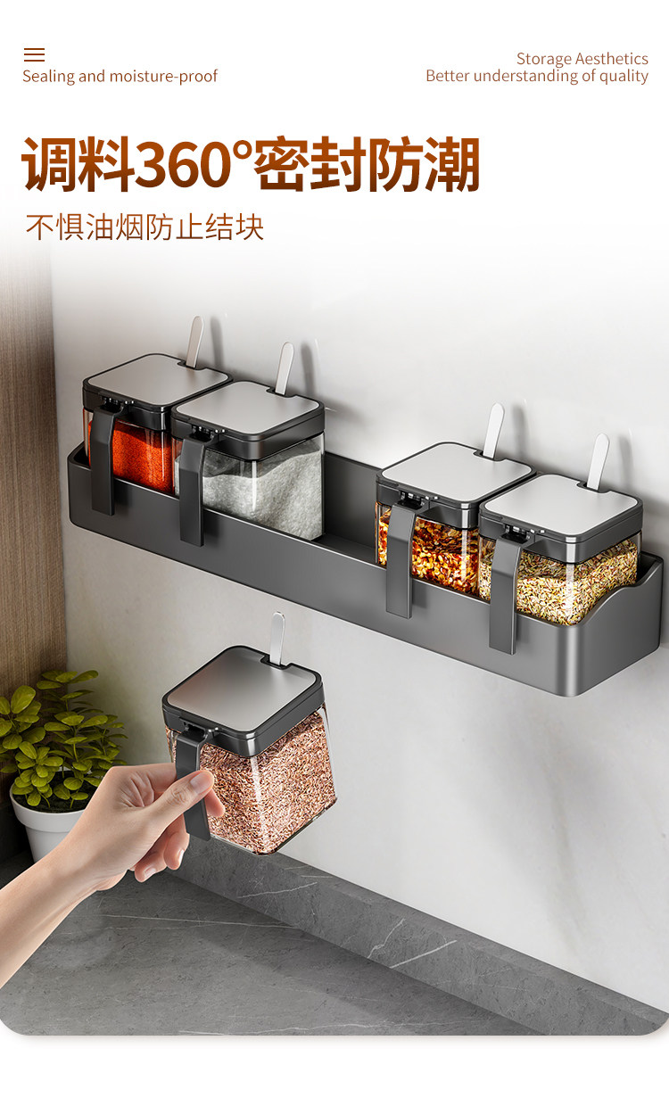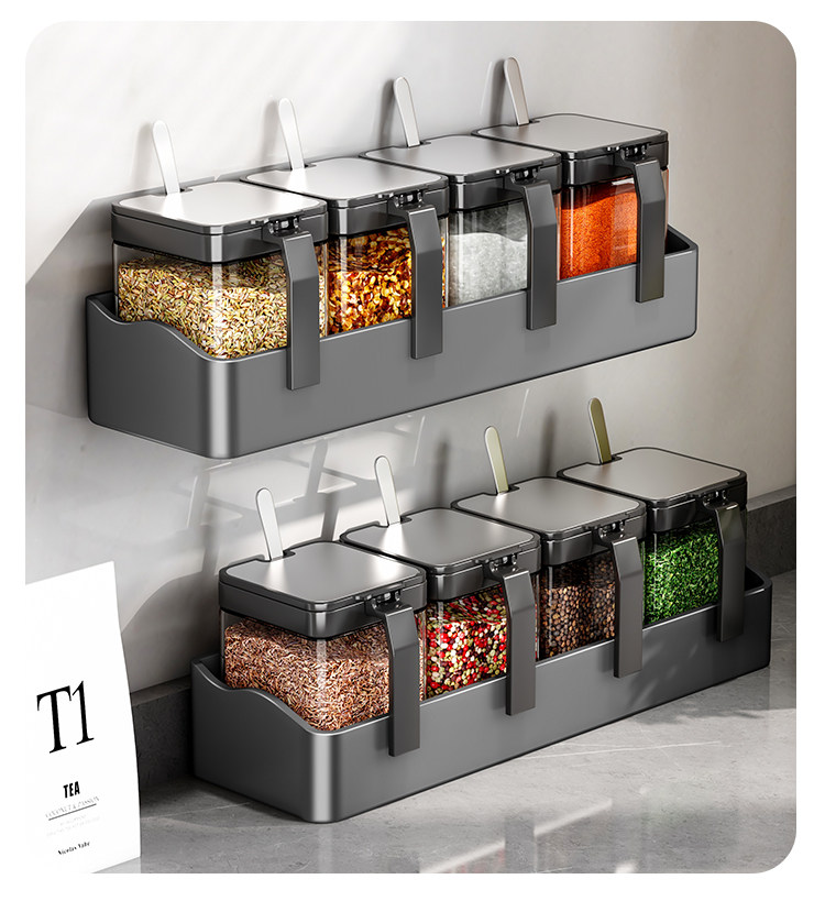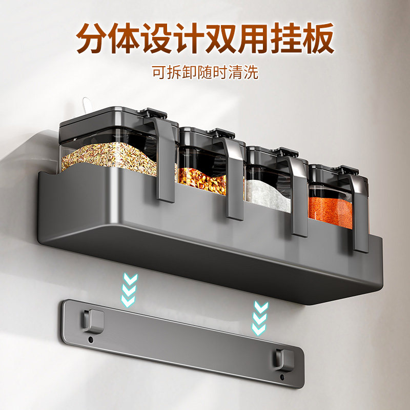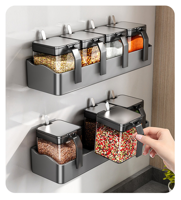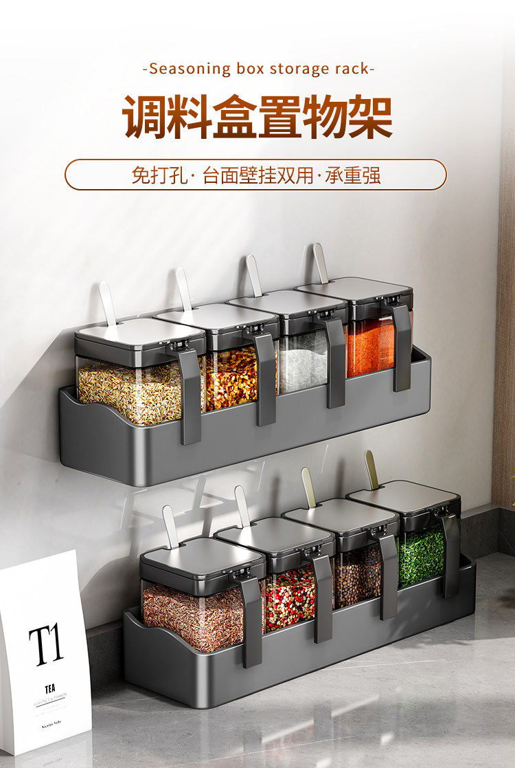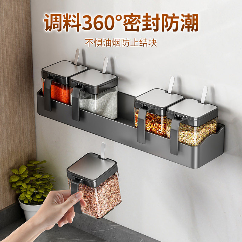 Настенная кухонная полка для банок для приправ, коробка для приправ, стеллаж для хранения без перфоратора, настенный набор бутылок для банок для приправ, встроенная стеклянная солонка