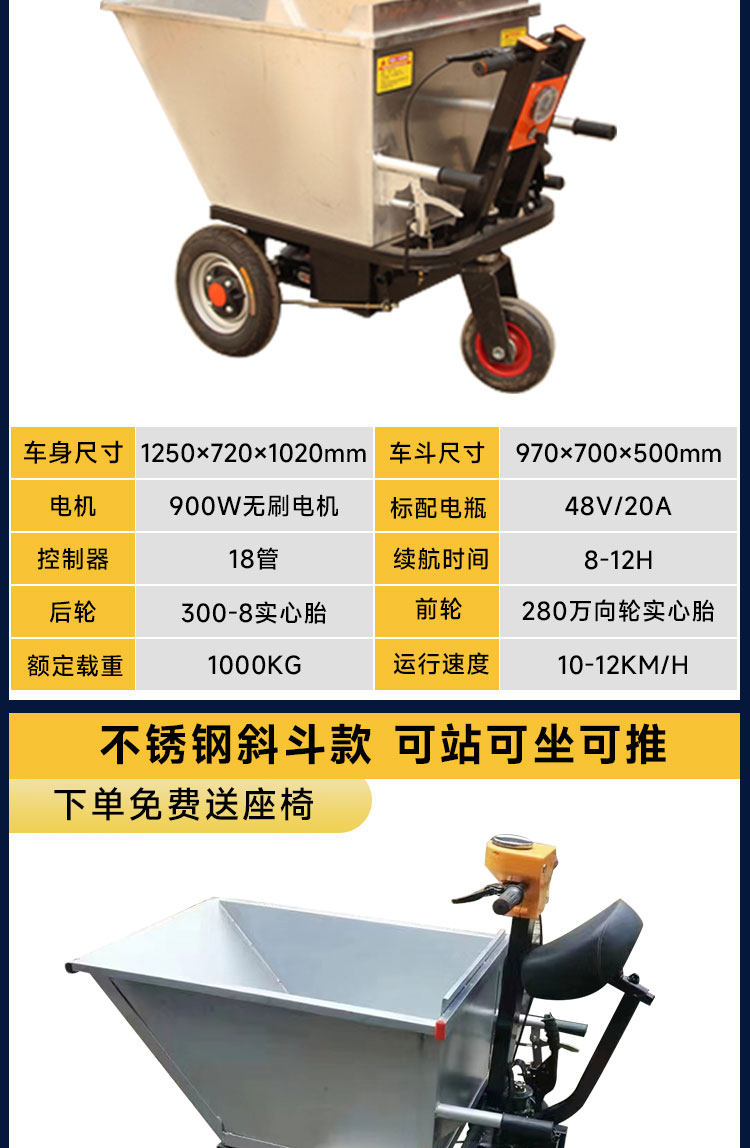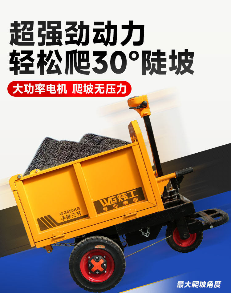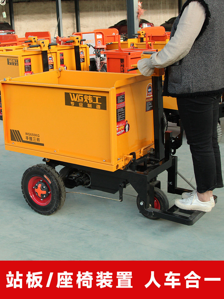 Электрическая строительная площадка электрические тележки с серым ведром с тремя инструментами для перевозки кирпичного кирпичного кирпича и вытягивания автомобиля навоза