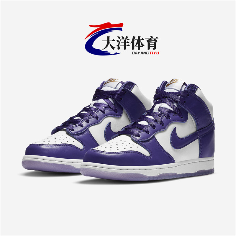 Nike Dunk High "университетская пурпурная" белая пурпурная кассовая ботинка с высокой высотой dc5382-100