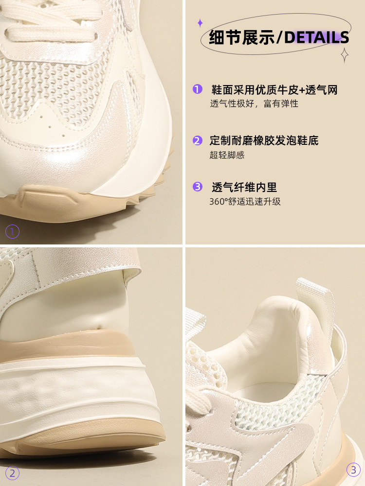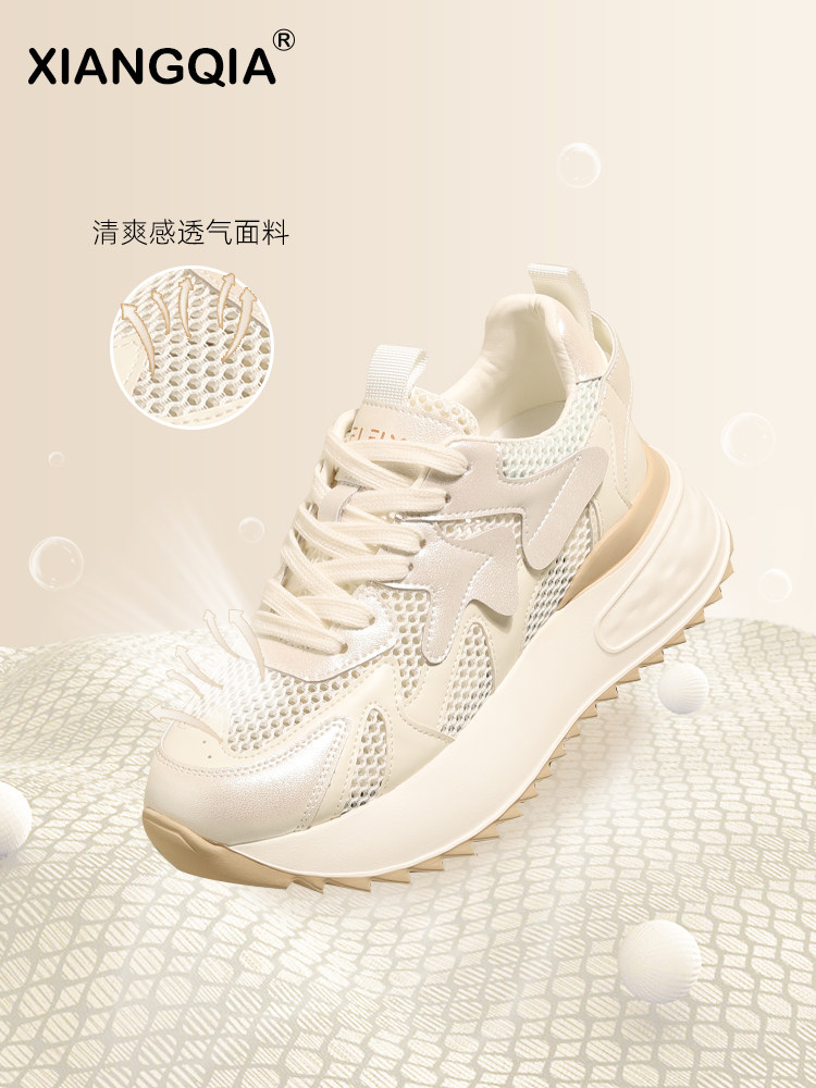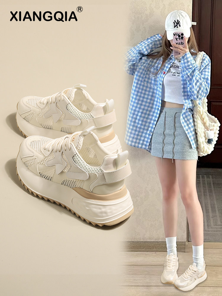 Спортивная обувь для женщин, обувь с сеткой, обувь для папы с дышащей сеткой и внутренней отделкой для женщин, новинка 2024 года, летние женские туфли на мягкой подошве с толстой подошвой