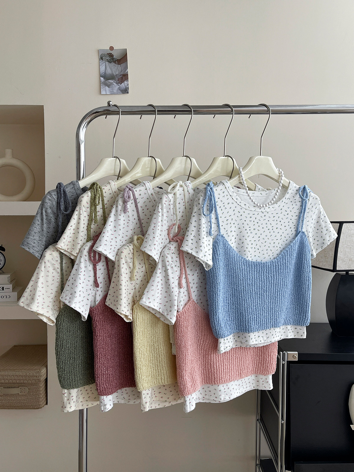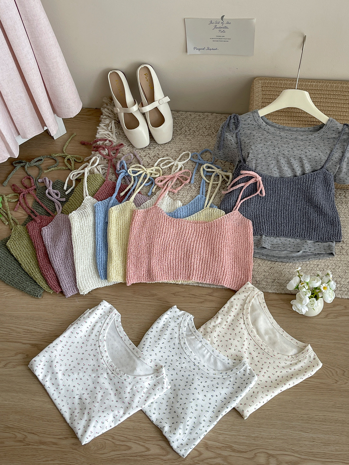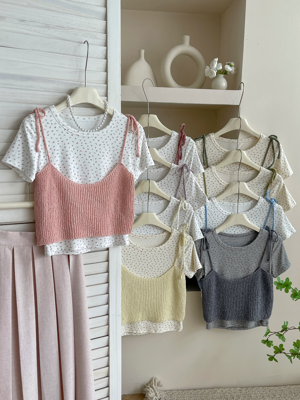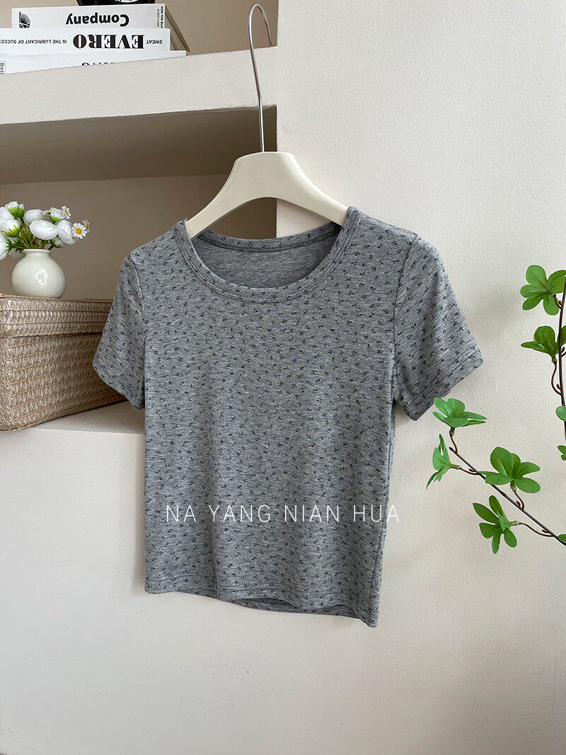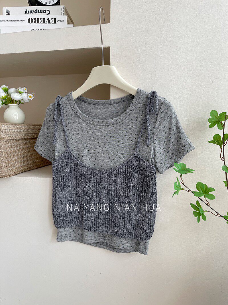 Милый трикотажный топ с чашечками, комплект, футболка, для маленькой груди, цветочный принт