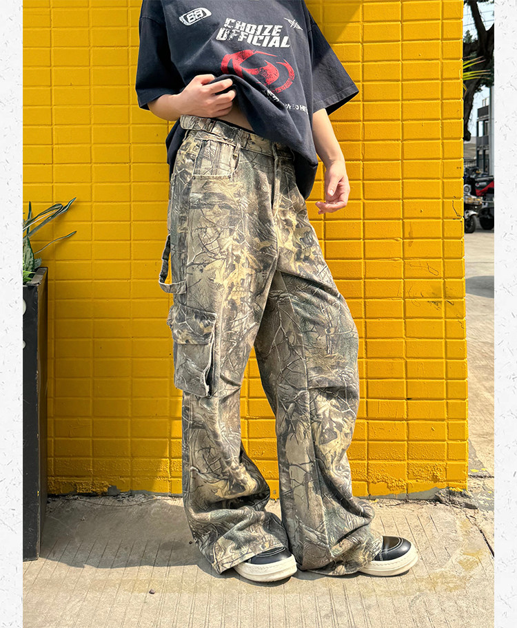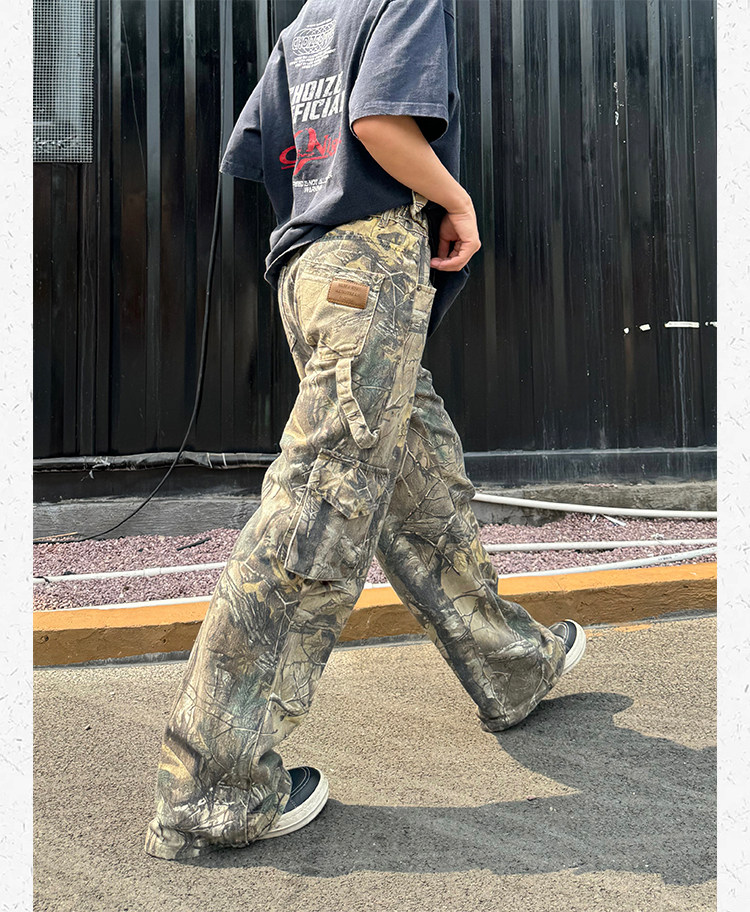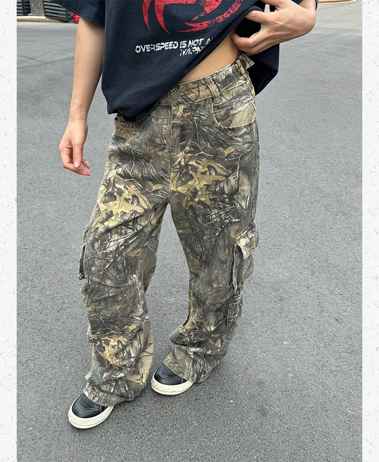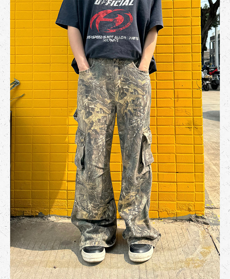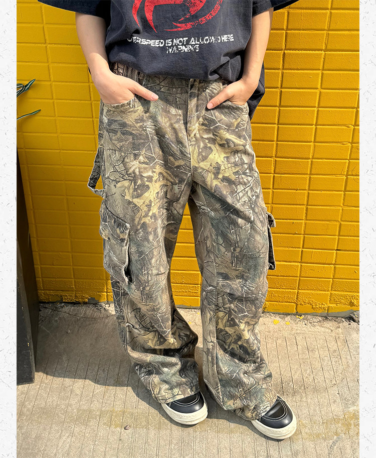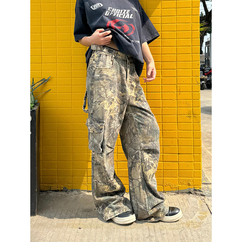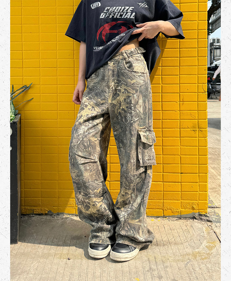 Ретро дизайнерские камуфляжные штаны подходит для мужчин и женщин, в американском стиле, свободный прямой крой