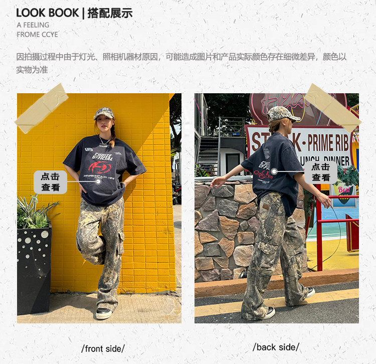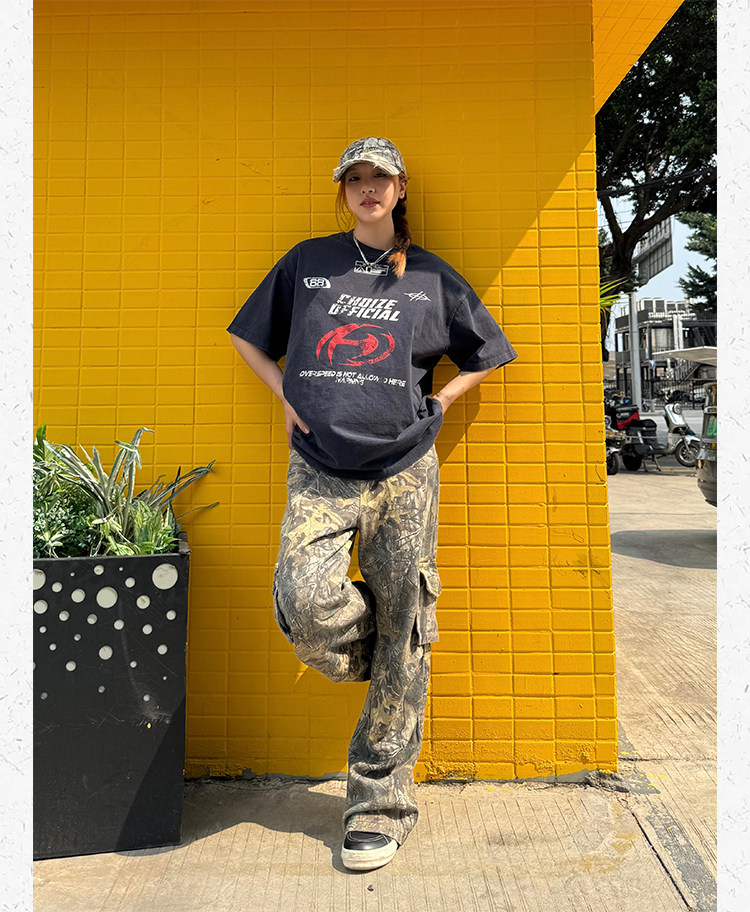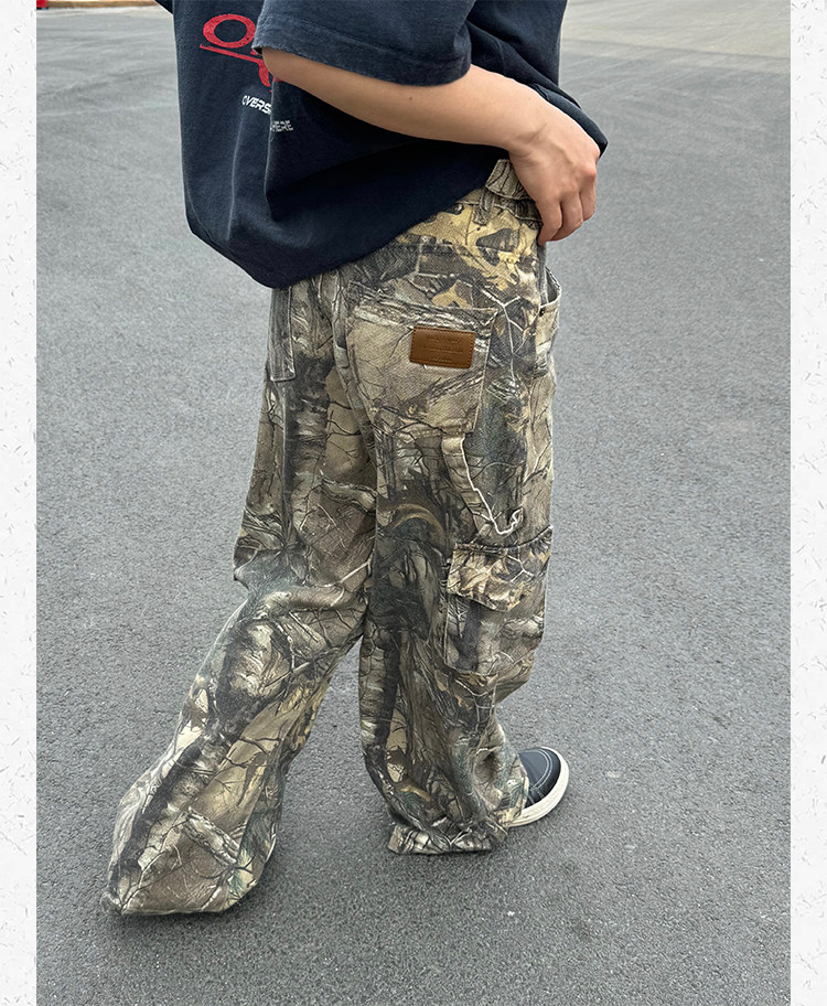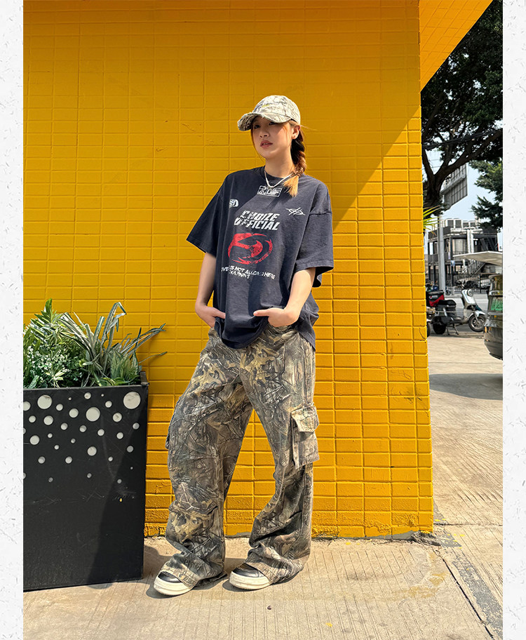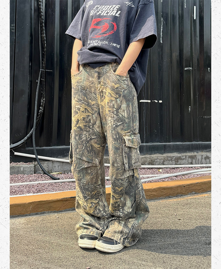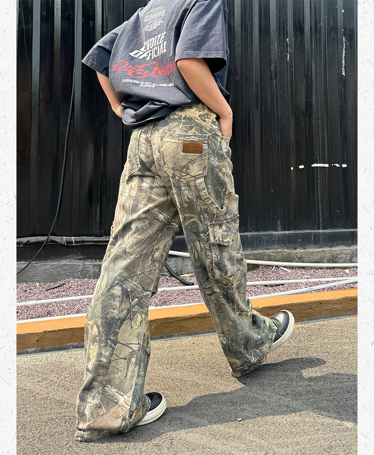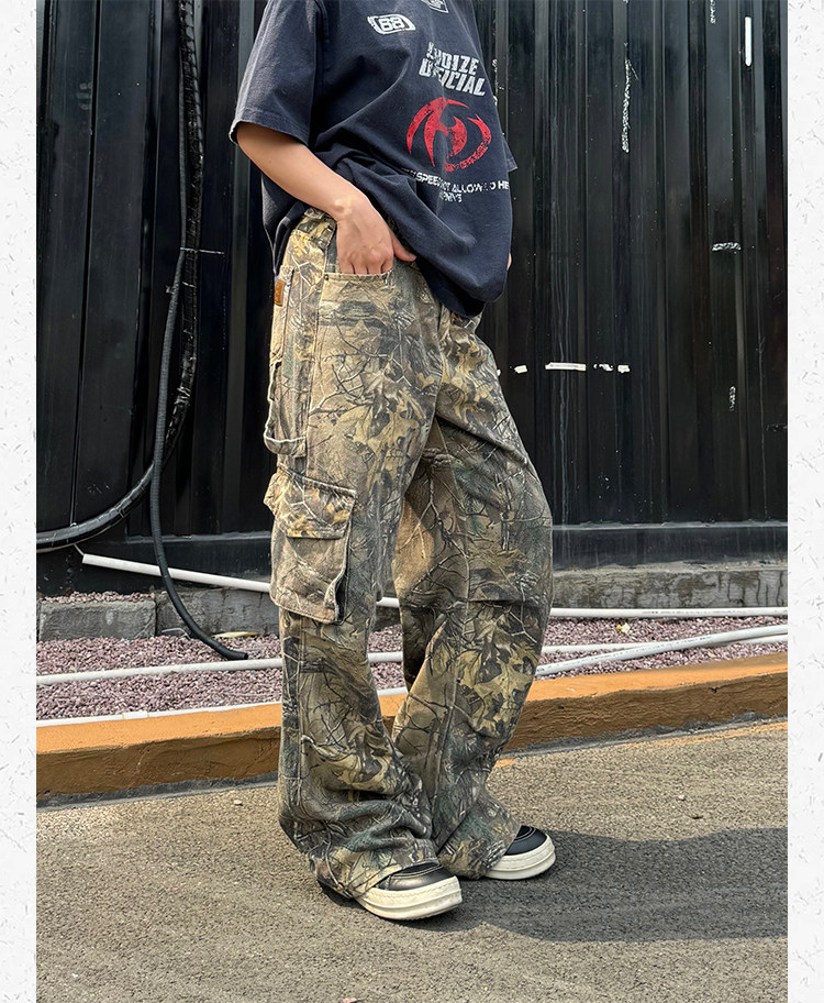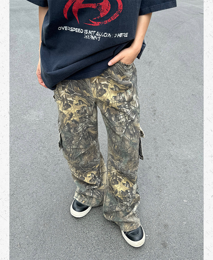 Ретро дизайнерские камуфляжные штаны подходит для мужчин и женщин, в американском стиле, свободный прямой крой