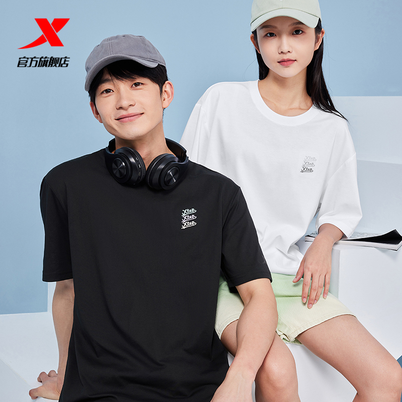 Xtep, летняя спортивная футболка подходит для мужчин и женщин для отдыха для влюбленных, короткий рукав, с печатью вашего логотипа, оверсайз