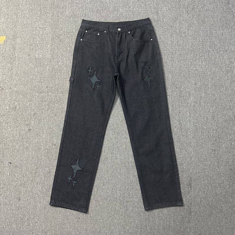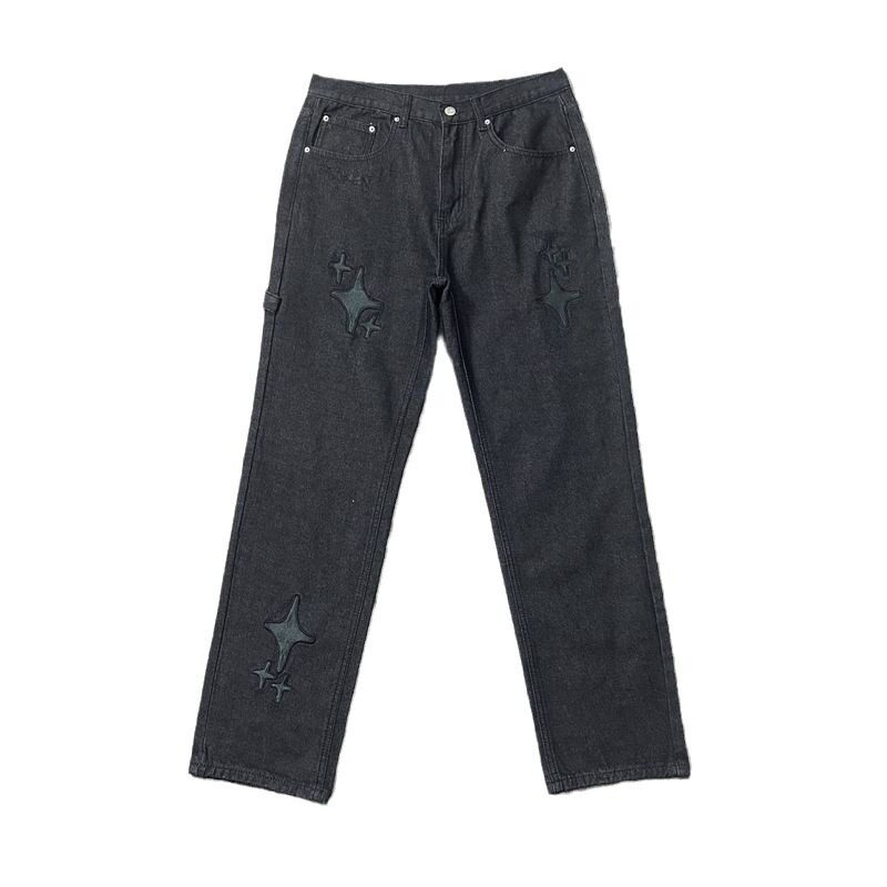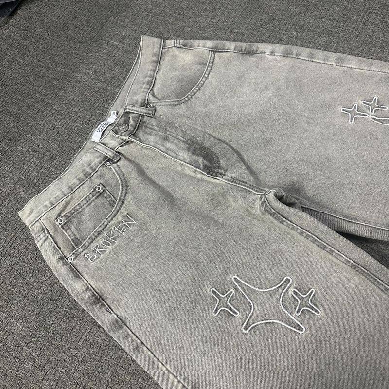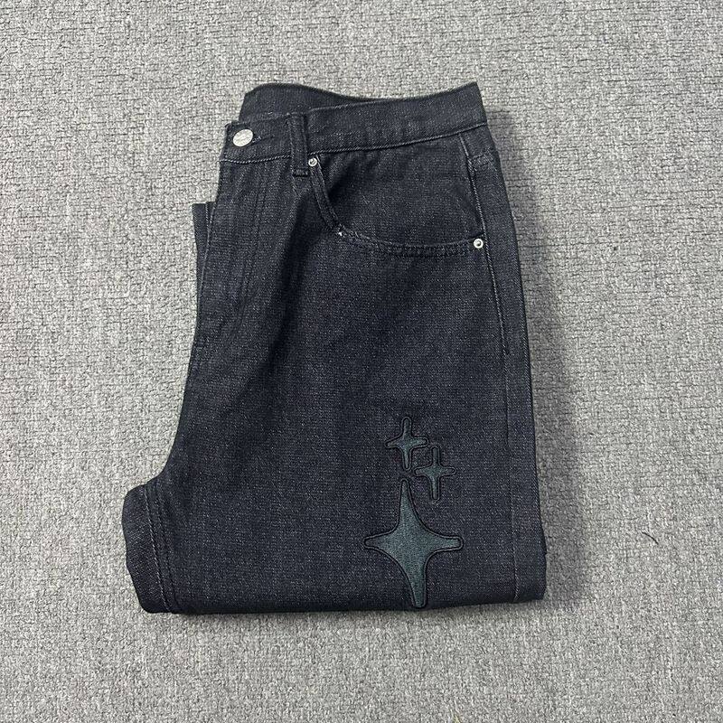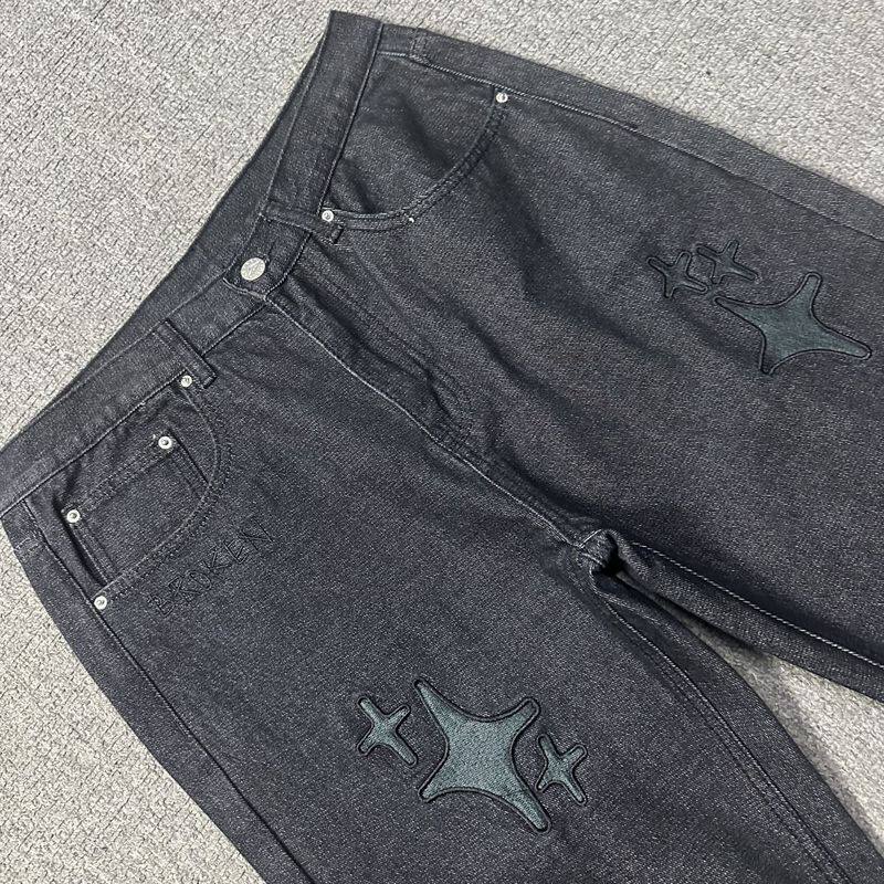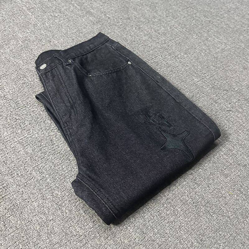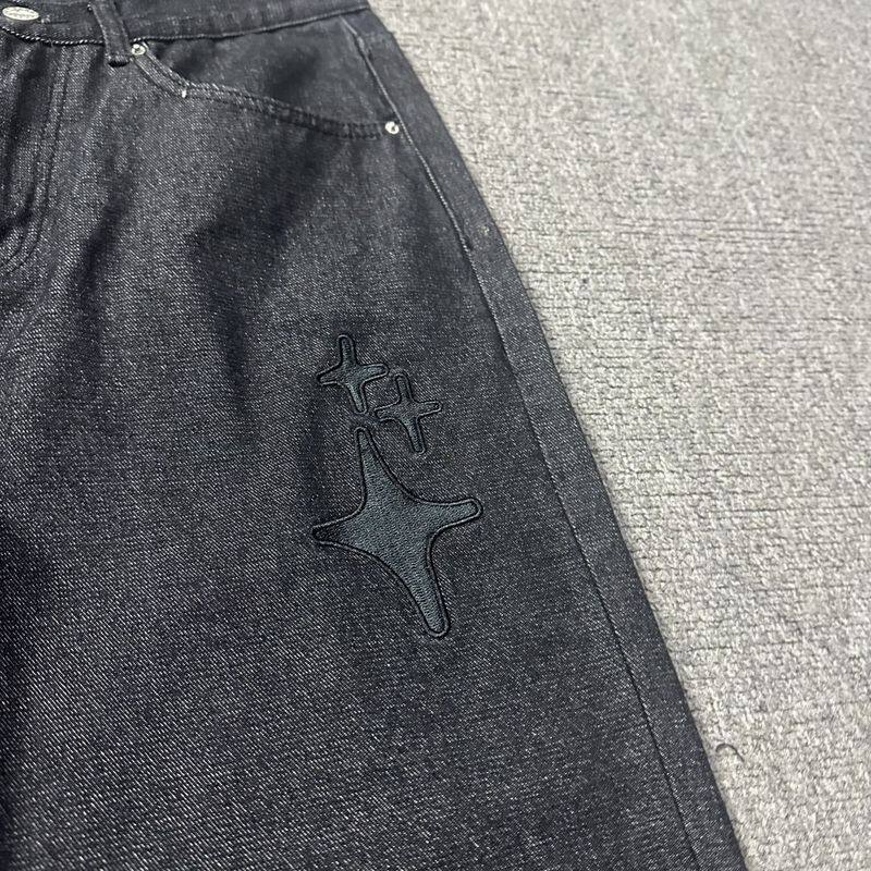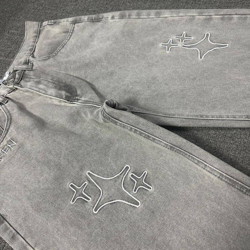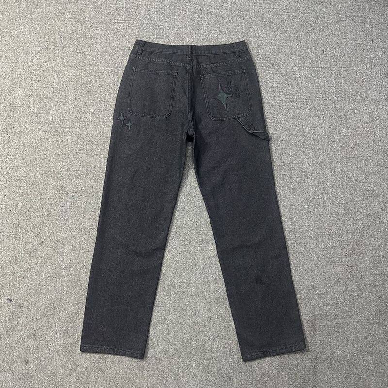 Джинсы, штаны в стиле хип-хоп подходит для мужчин и женщин, с вышивкой, свободный прямой крой