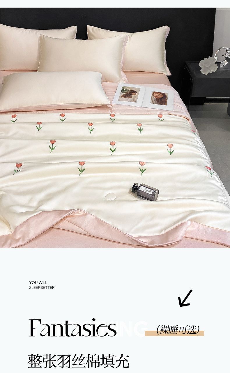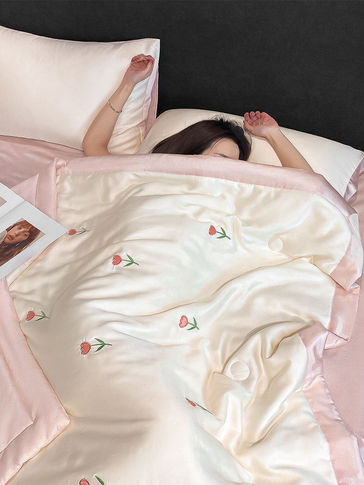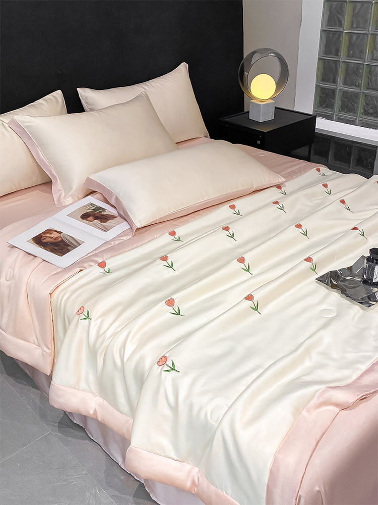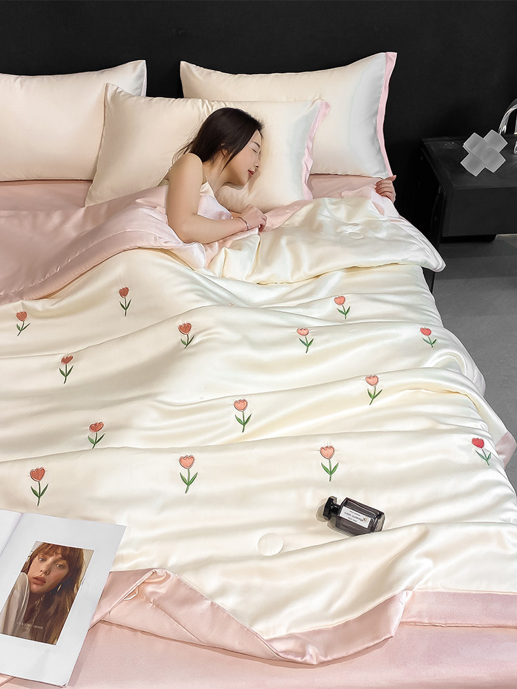 Летний кремовый шелковый высококлассный комплект, пододеяльник, простыня, 4 предмета, изысканный стиль, 3 предмета