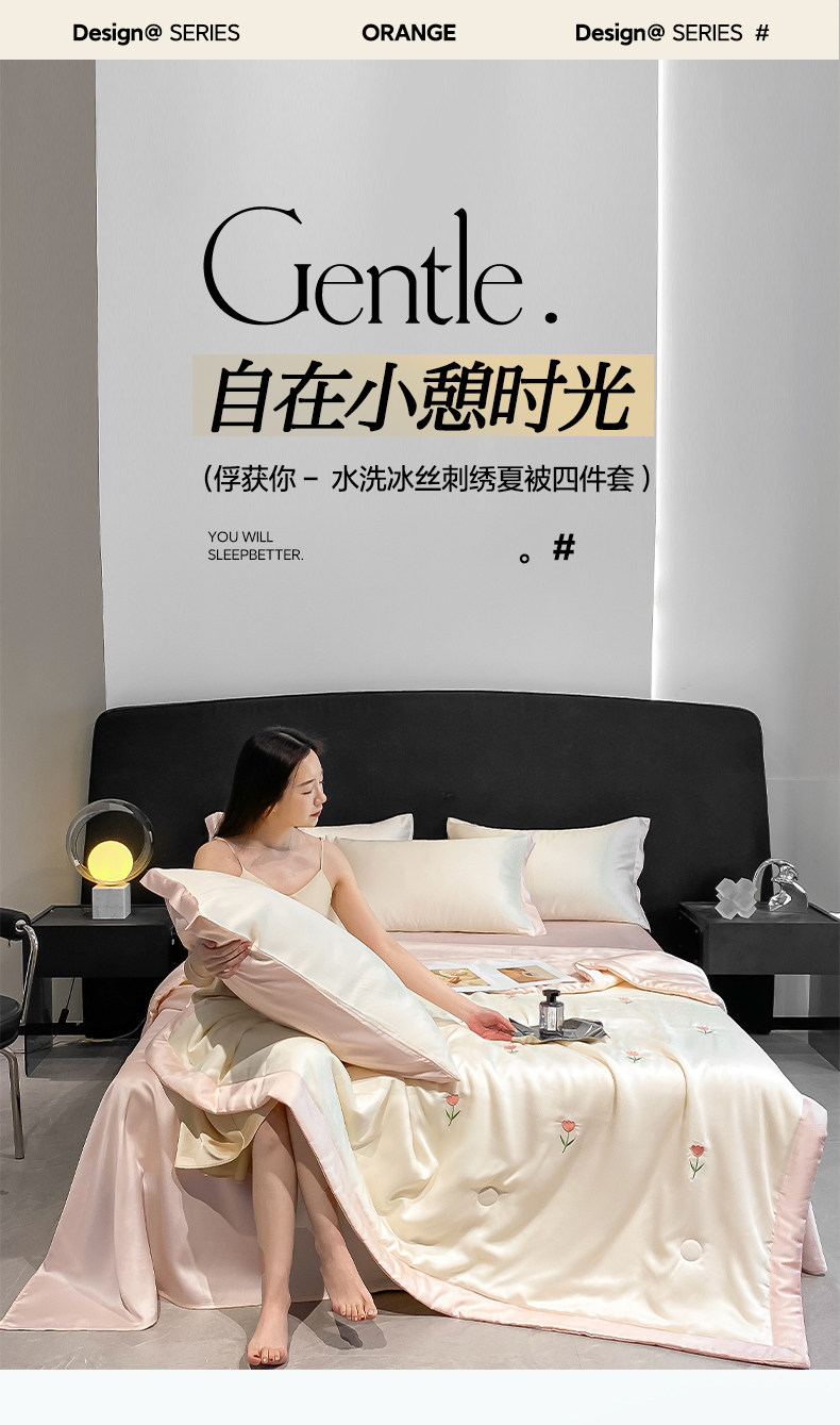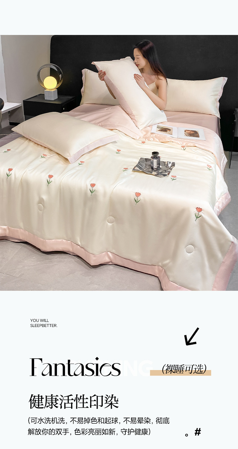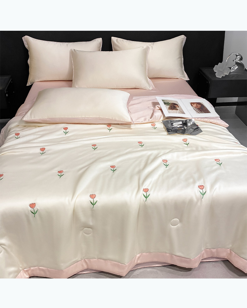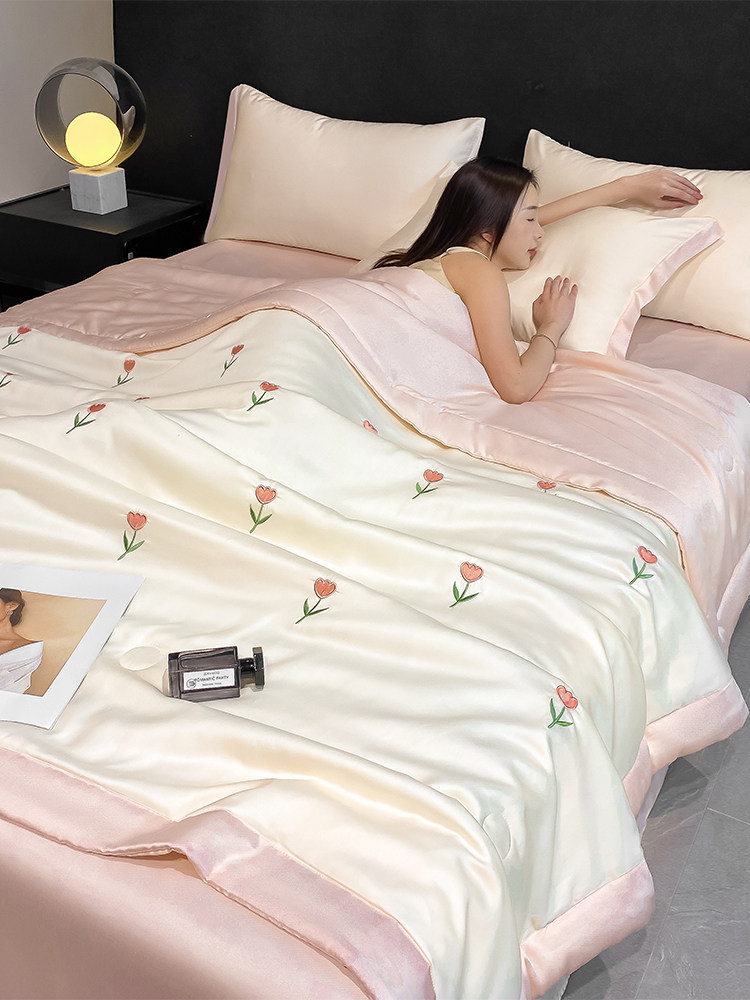 Летний кремовый шелковый высококлассный комплект, пододеяльник, простыня, 4 предмета, изысканный стиль, 3 предмета
