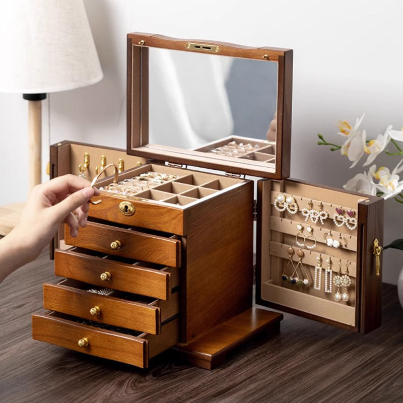 Деревянная коробочка для хранения, высококлассная изысканная коробка для хранения, ожерелье, ювелирное украшение, вместительный и большой аксессуар