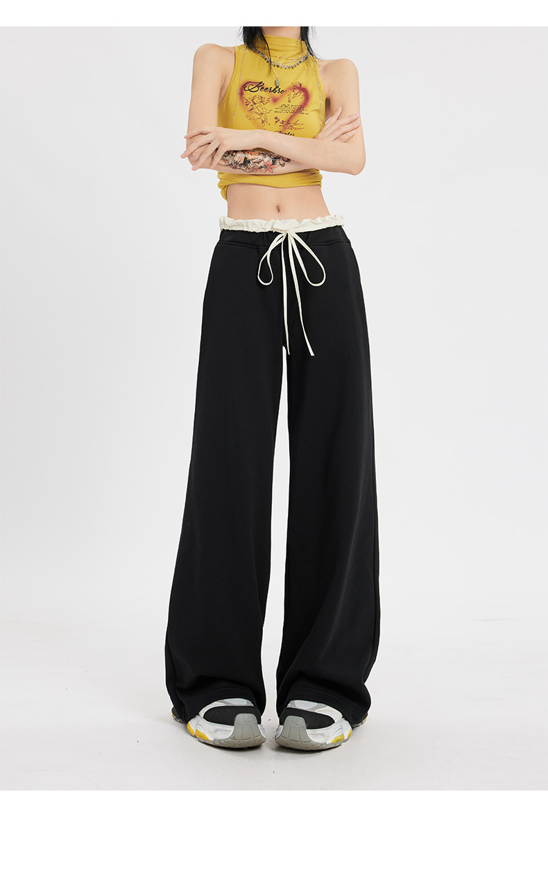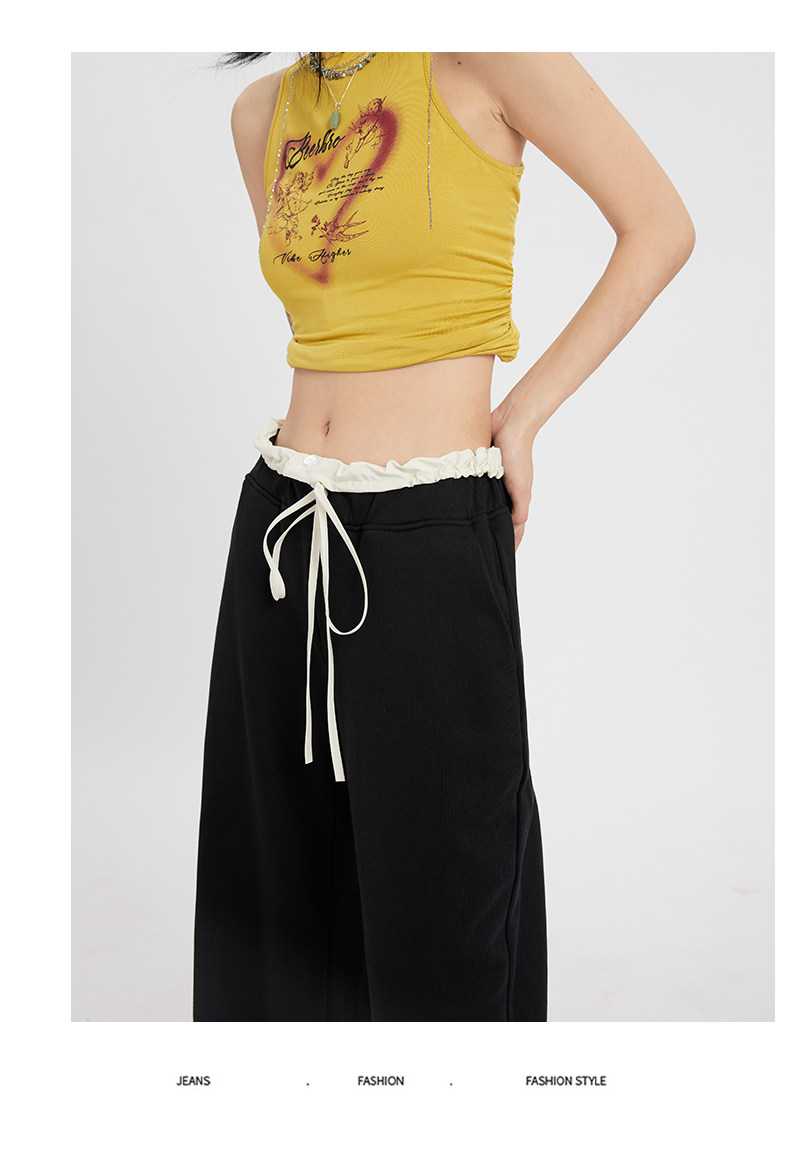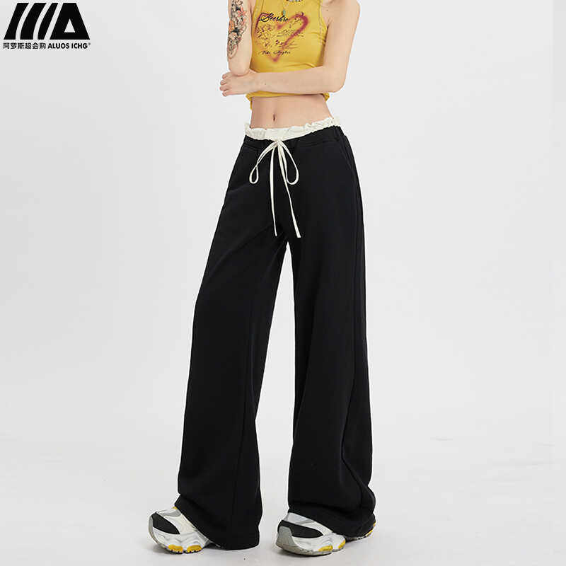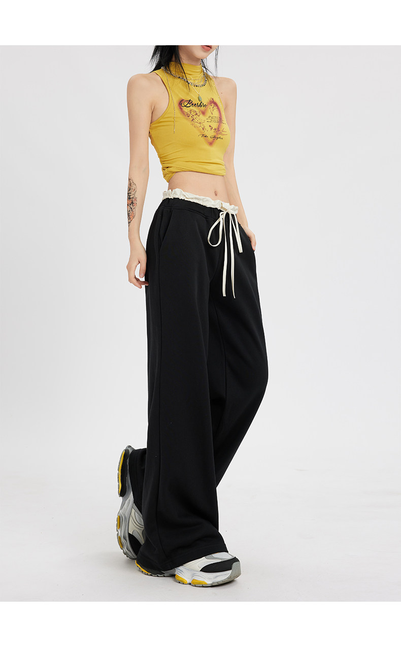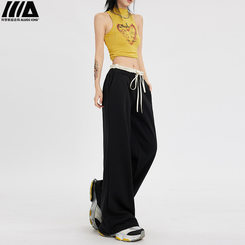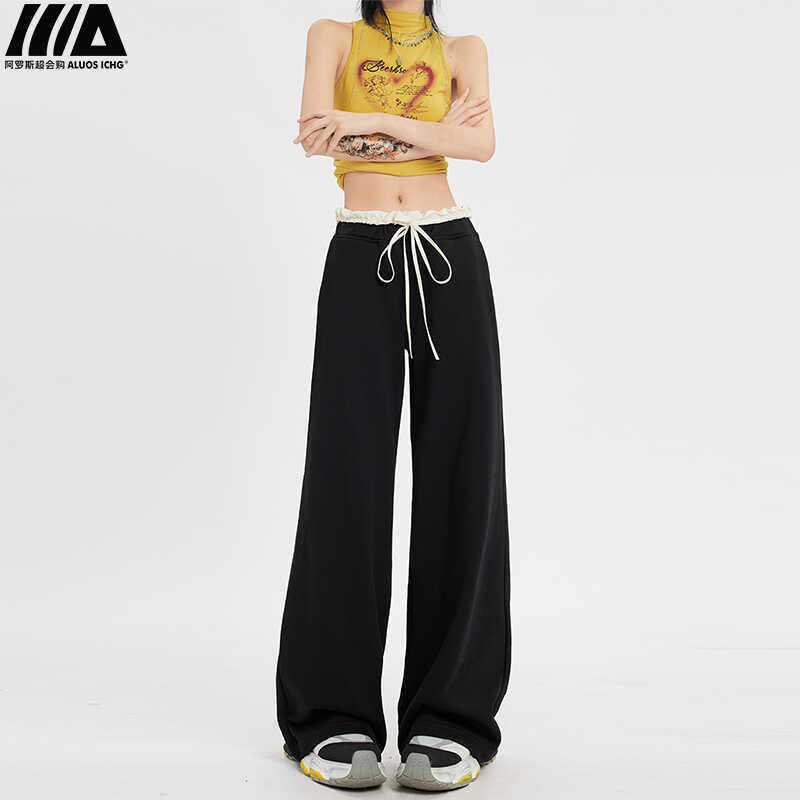 Черные летние тонкие штаны для отдыха, на шнурках, свободный крой