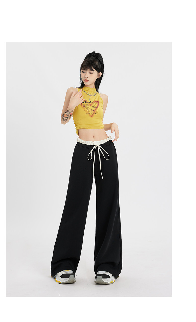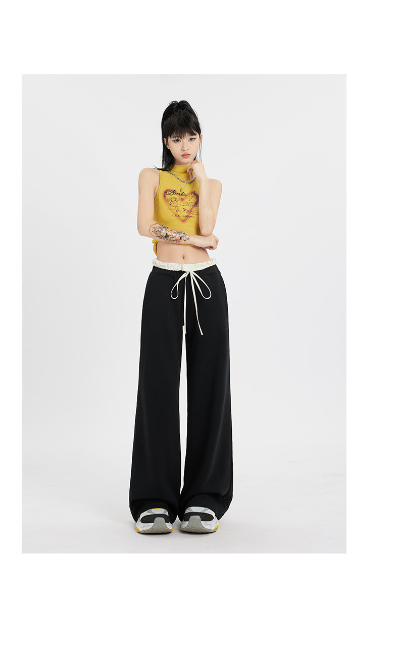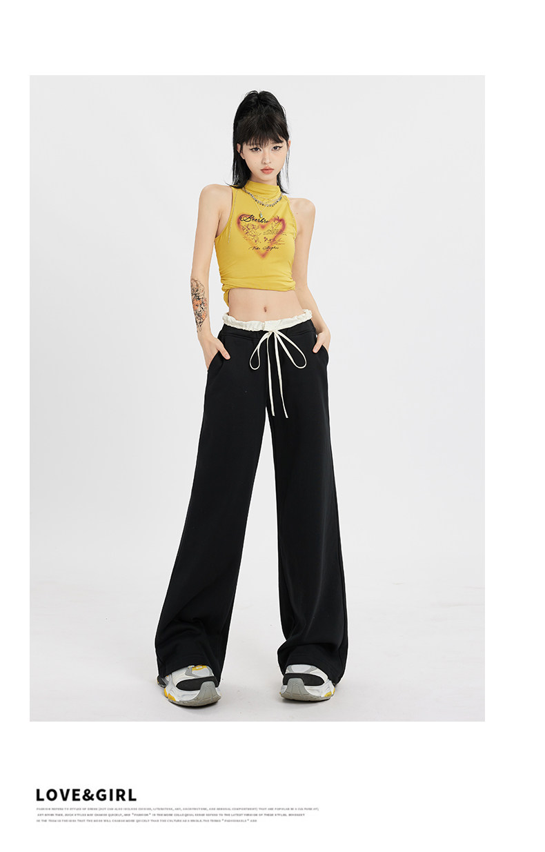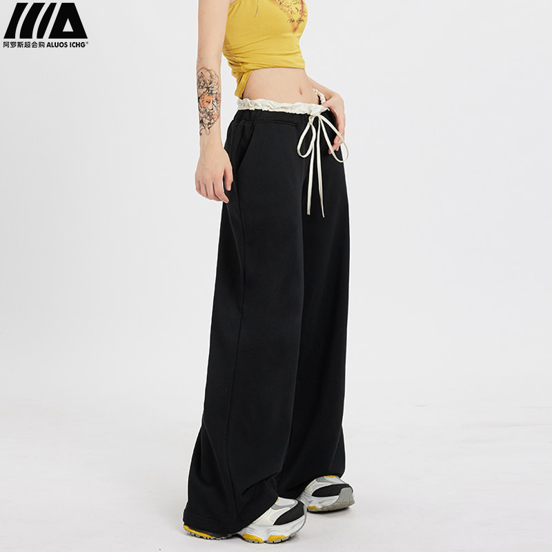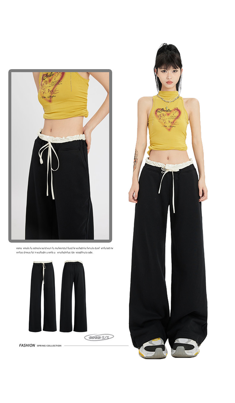 Черные летние тонкие штаны для отдыха, на шнурках, свободный крой