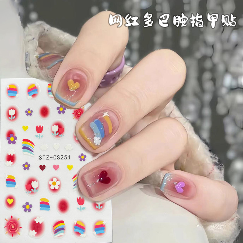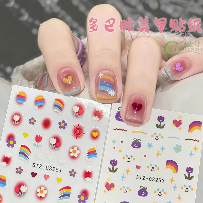 Летняя радужная мультяшная наклейка для маникюра, наклейки для ногтей для ногтей, аксессуар, популярно в интернете, новая коллекция