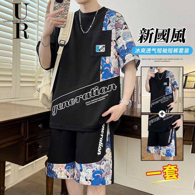 Нарукавники, мужской летний комплект, спортивная шелковая тонкая футболка для отдыха, короткий рукав, оверсайз