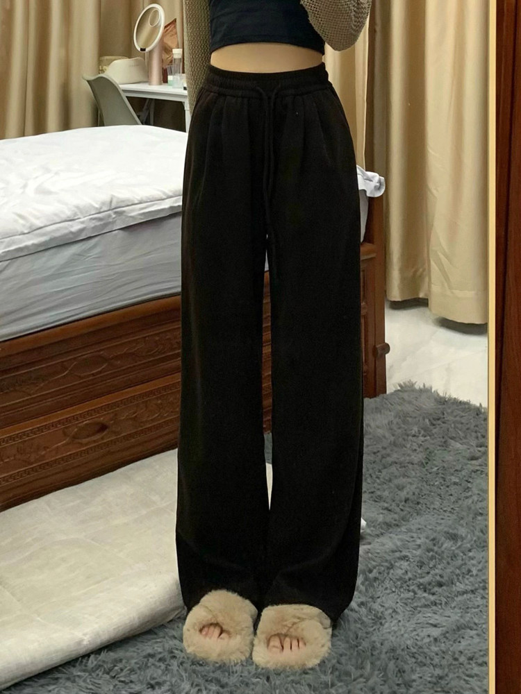 Штаны, летний клейкий рис, высокая талия, свободный прямой крой, стройный силуэт