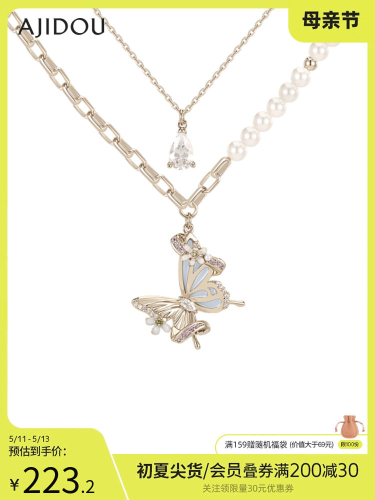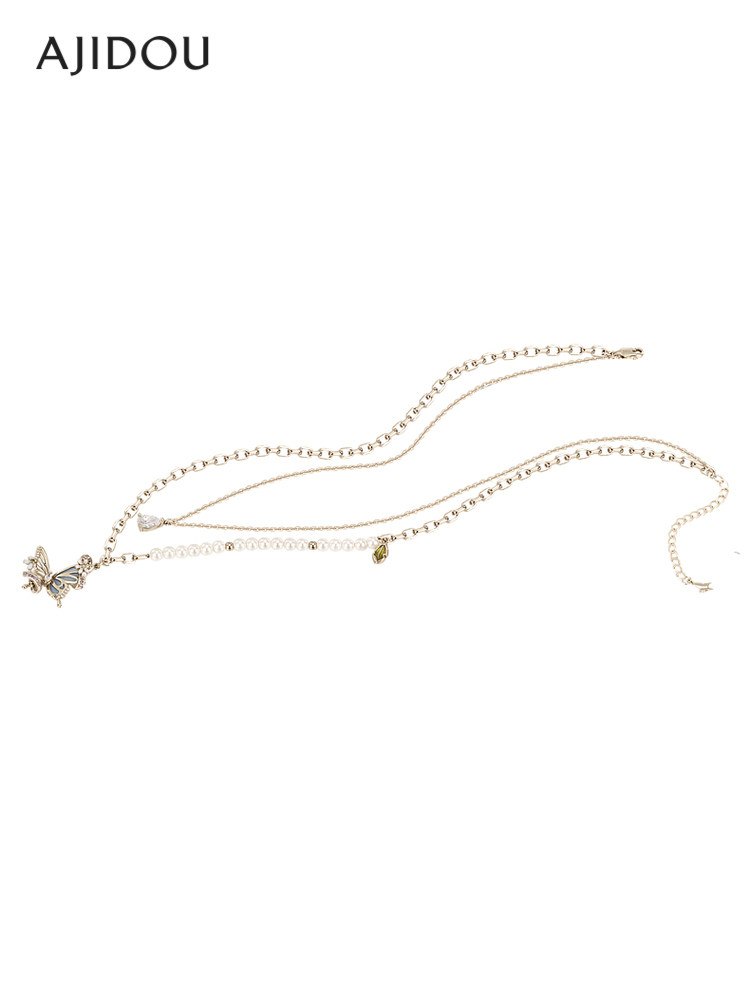 Ajidou Ajidou Secret Die Shadow Series Light Luxury злодей изящный, элегантное двойное жемчужное ожерелье