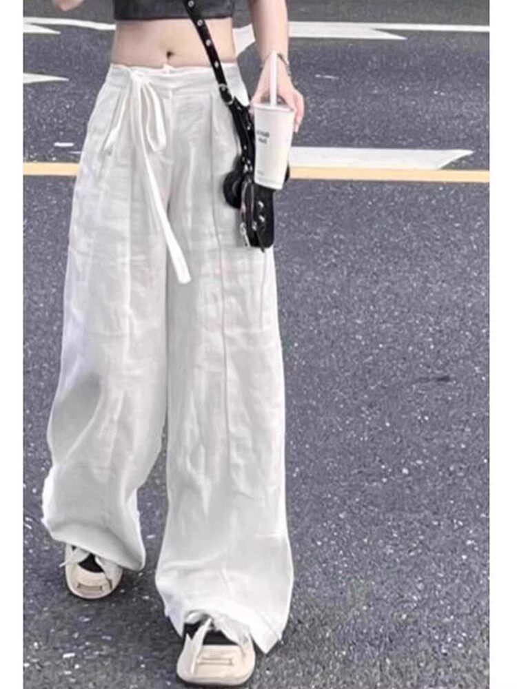 (Spot) 2024 Новые белые брюки из белых белых льнов Tinel Ramie, свободные, удобные и провисающие хлопковые и льняные брюки для женщин