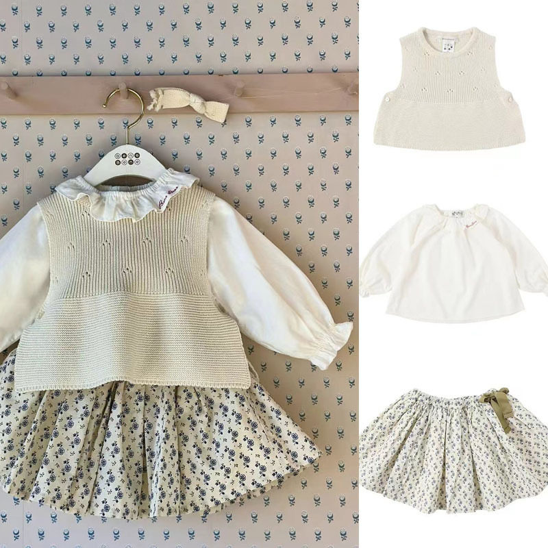 Летняя детская рубашка, жилет, юбка, летний комплект