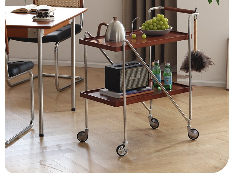Антикварная тележка из цельного дерева, простой приставной столик к дивану, передвижной журнальный столик, обеденный шкаф в гостиной и стеллаж для хранения вещей.