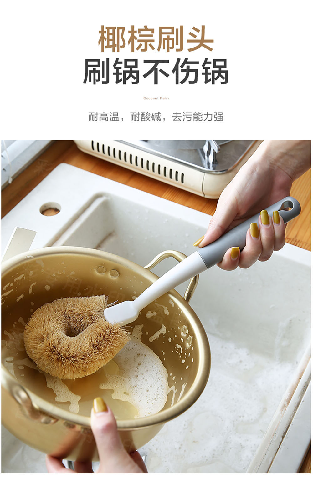 Чистка артефакта для очистки горшка для мытья горшка щетка для дома чистая, декотамина, не продуманное масло, кокосовая пальма, не повредив горшок, метла, метла