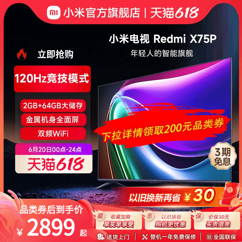 Xiaomi TV 75-дюймовый Smart Ultra-High-Definition 4K Voice Home Flat-Panel LCD TV Redmi AI X75