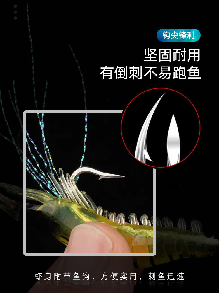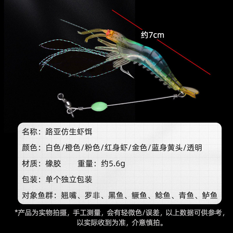 Луя фальшивая приманка Светящая бионическая мягкая приманка Подвеса мягкая креветка море рыбалка с краями рта бас Османатх Черная рыба прижима