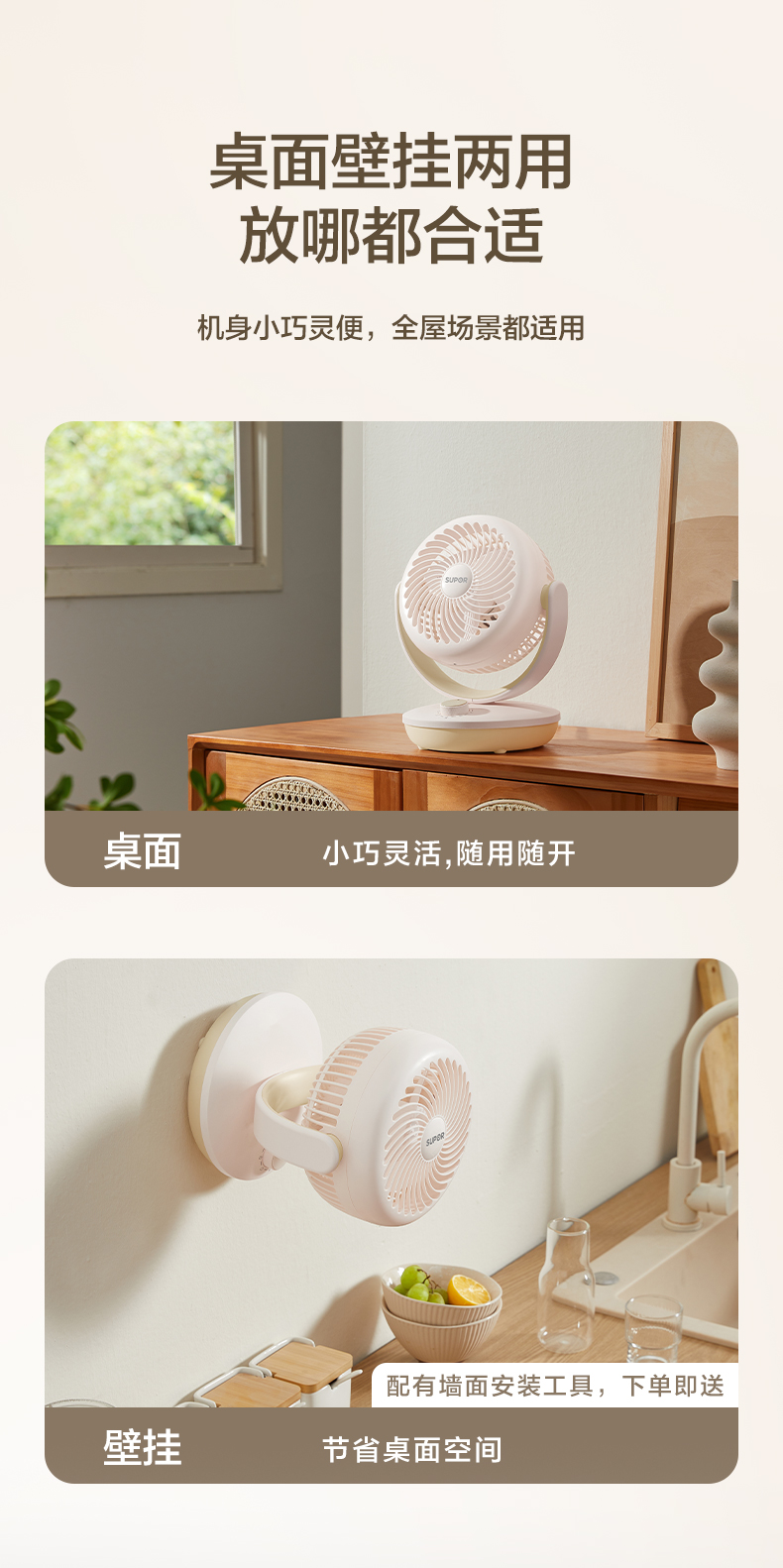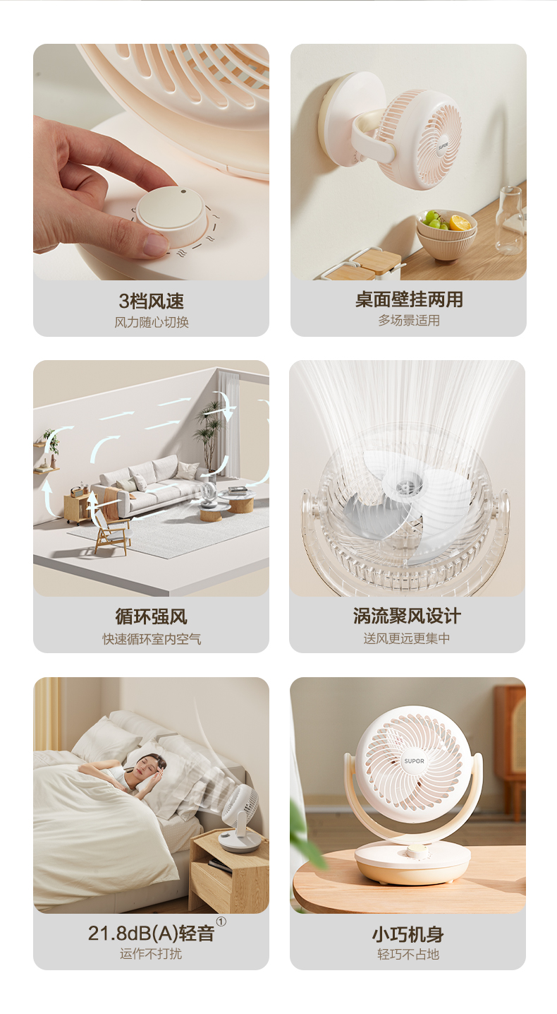 Supor 2024 Новый электрический вентилятор дома маленькие настенные настенные настенные настенные настенные настенные