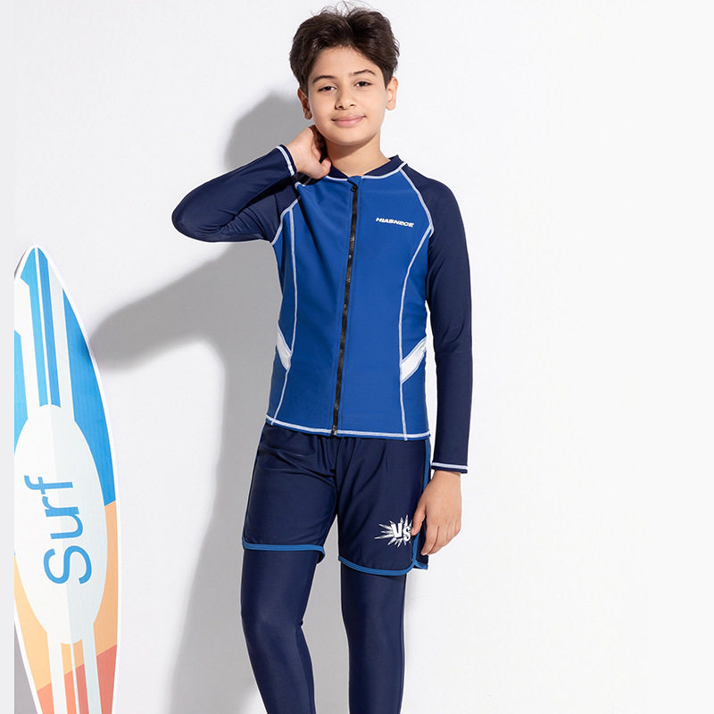 Детский купальник для мальчиков, лонгслив, штаны, комплект, подходит для подростков, 3 предмета, защита от солнца
